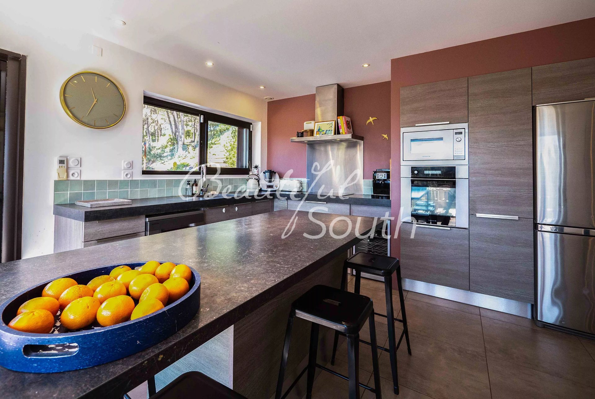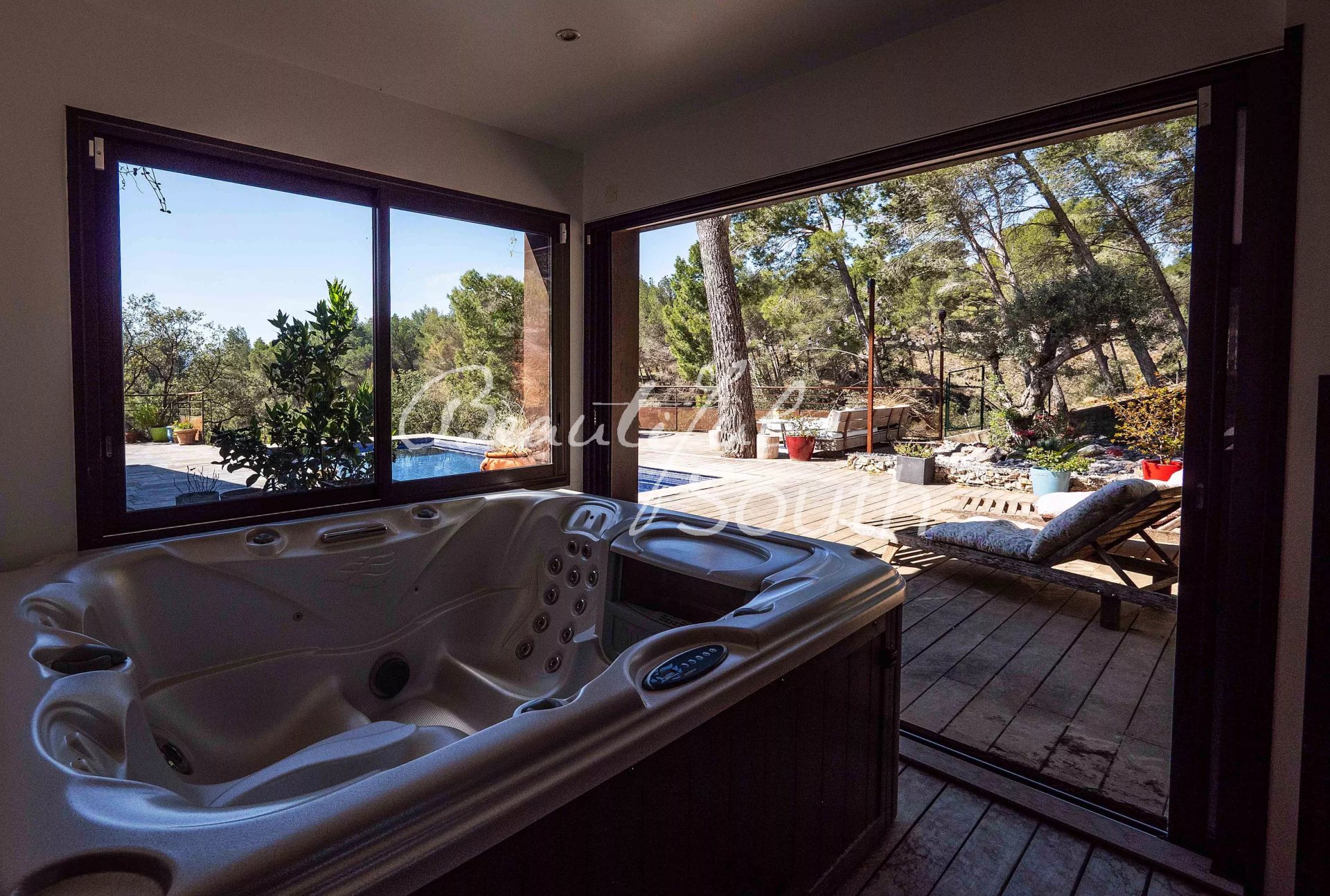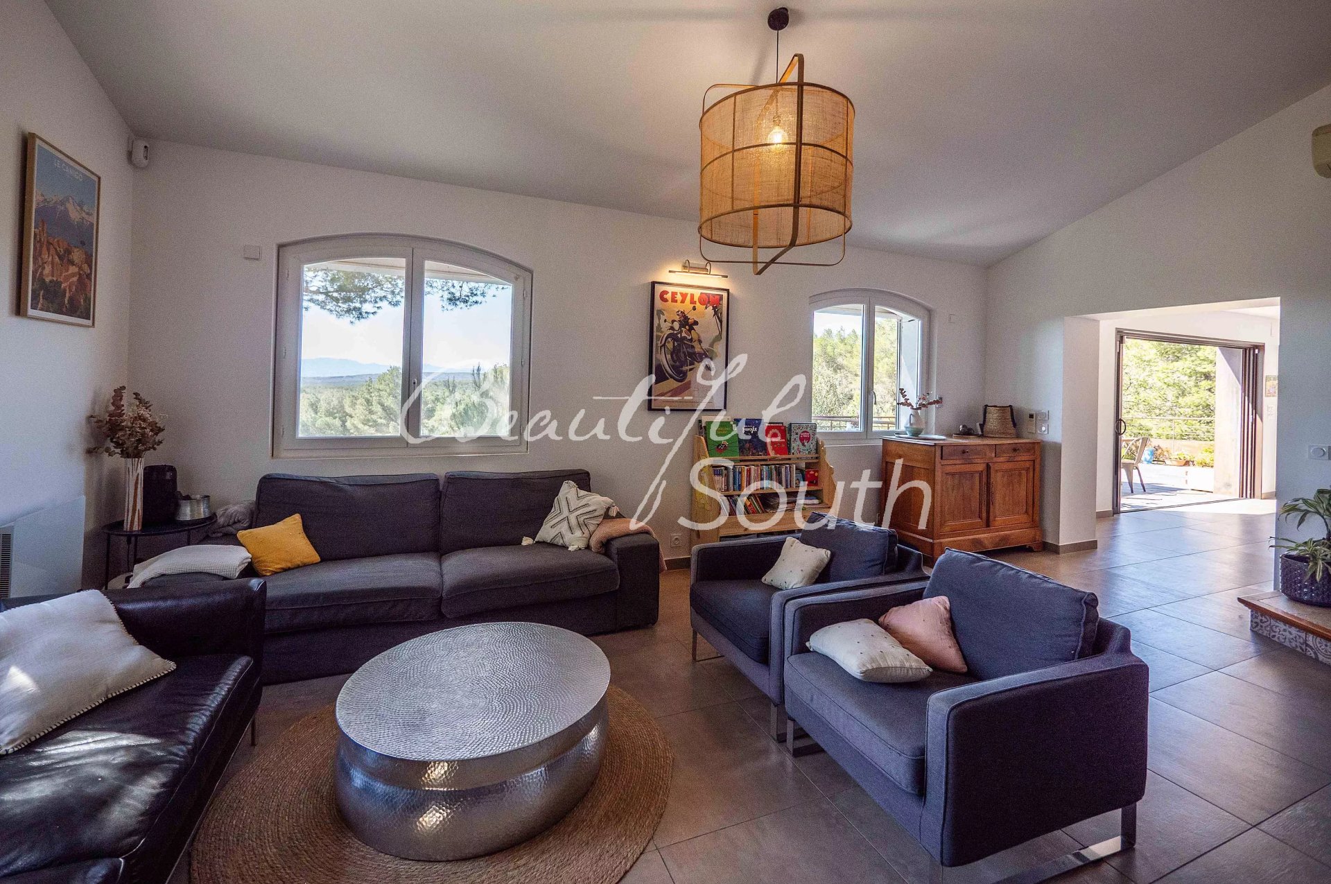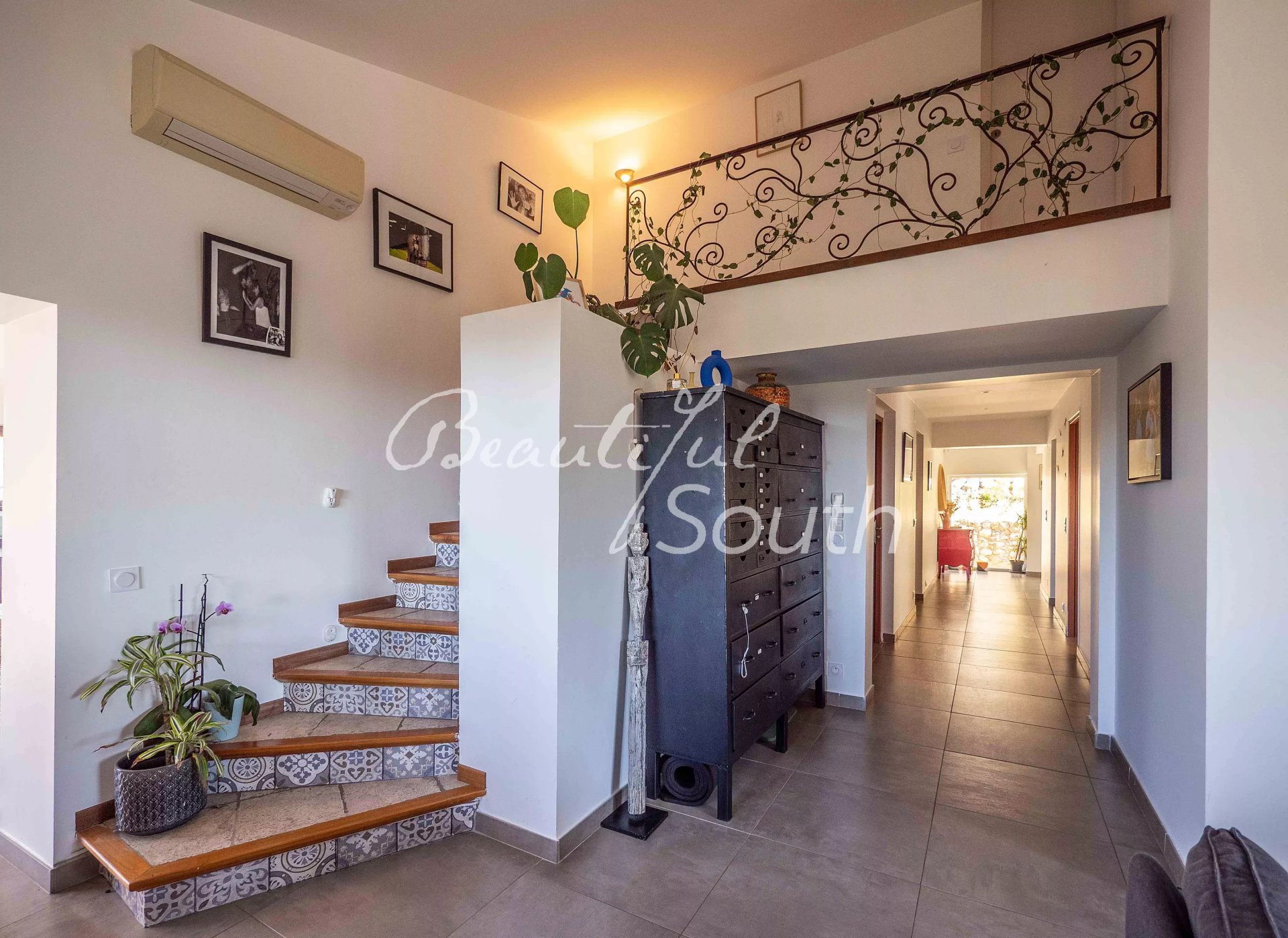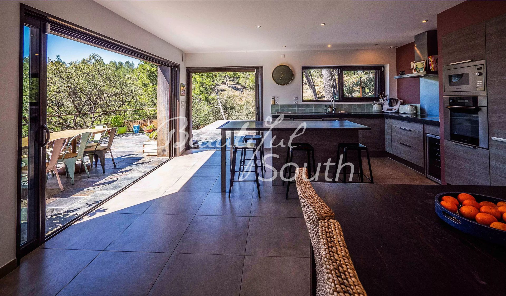 Entièrement rénovée, cette propriété développe une surface habitable de 192 m², complétée par plusieurs pièces annexes. Dès l’entrée, baignée de lumière, vous accédez à un beau séjour avec cheminée, ainsi qu’à une cuisine moderne entièrement équipée, ouverte sur l’extérieur grâce à de larges baies vitrées à galandage. Ces espaces de vie se prolongent naturellement sur une superbe terrasse suspendue offrant des panoramas exceptionnels. Celle-ci est prolongée par une vaste terrasse en bois entourant intégralement la piscine chauffée, créant un espace de vie extérieur harmonieux et parfaitement intégré au jardin.