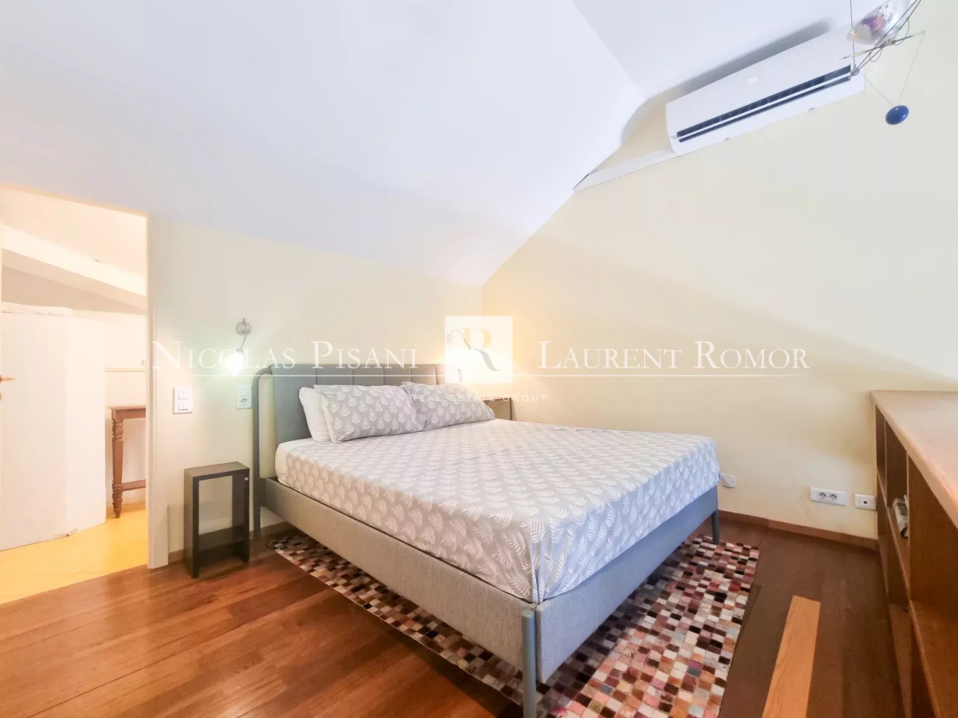 L’appartement offre de beaux volumes avec ses poutres apparentes et le charme de l’ancien d’antan. Il se compose d’un séjour lumineux avec cuisine américaine, d’une chambre à l'étage, deux salles de douche et un balcon.