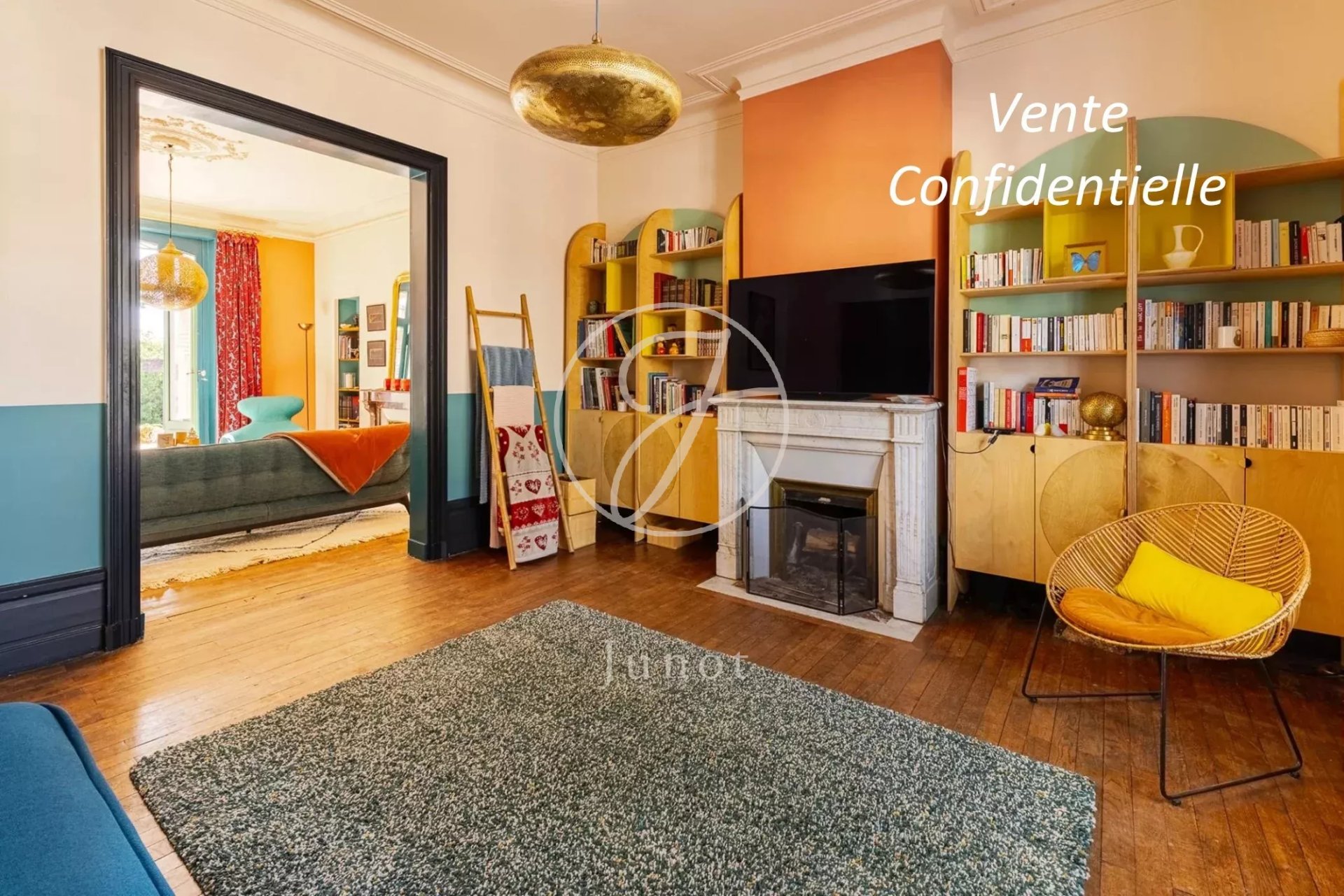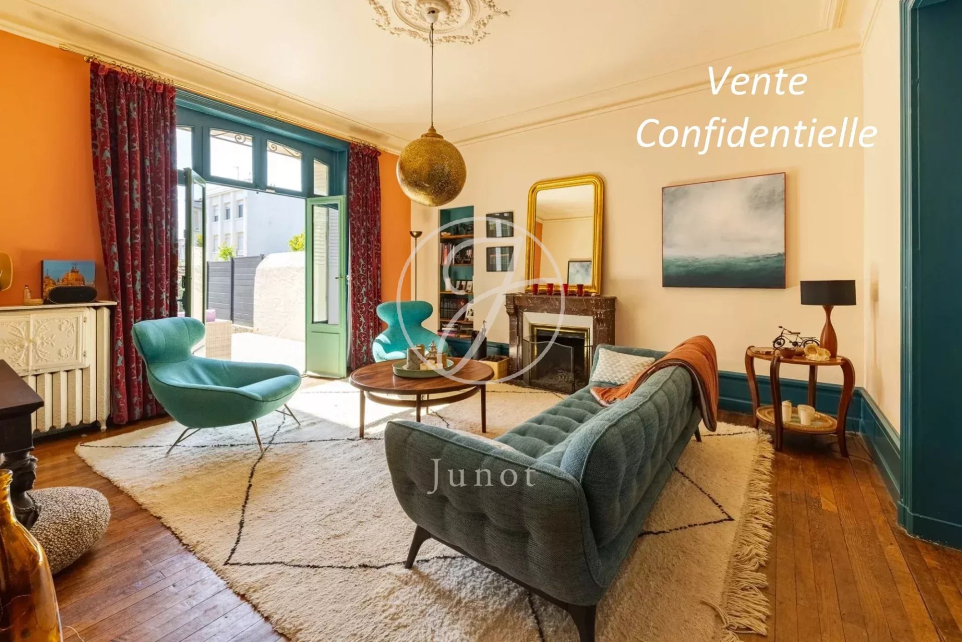 Située au cœur du quartier Mellinet, cette élégante maison bourgeoise de 1910 séduit par son architecture classique avec les tableaux de fenêtre, corniches et lucarne en tuffeau. Une maison de caractère ayant conservé tous les éléments de décor anciens. Edifiée sur une parcelle de 368m², en R+2 de 220m² habitables , auxquels s’ajoutent un sous-sol total de 70m² et un garage attenant de 20m².