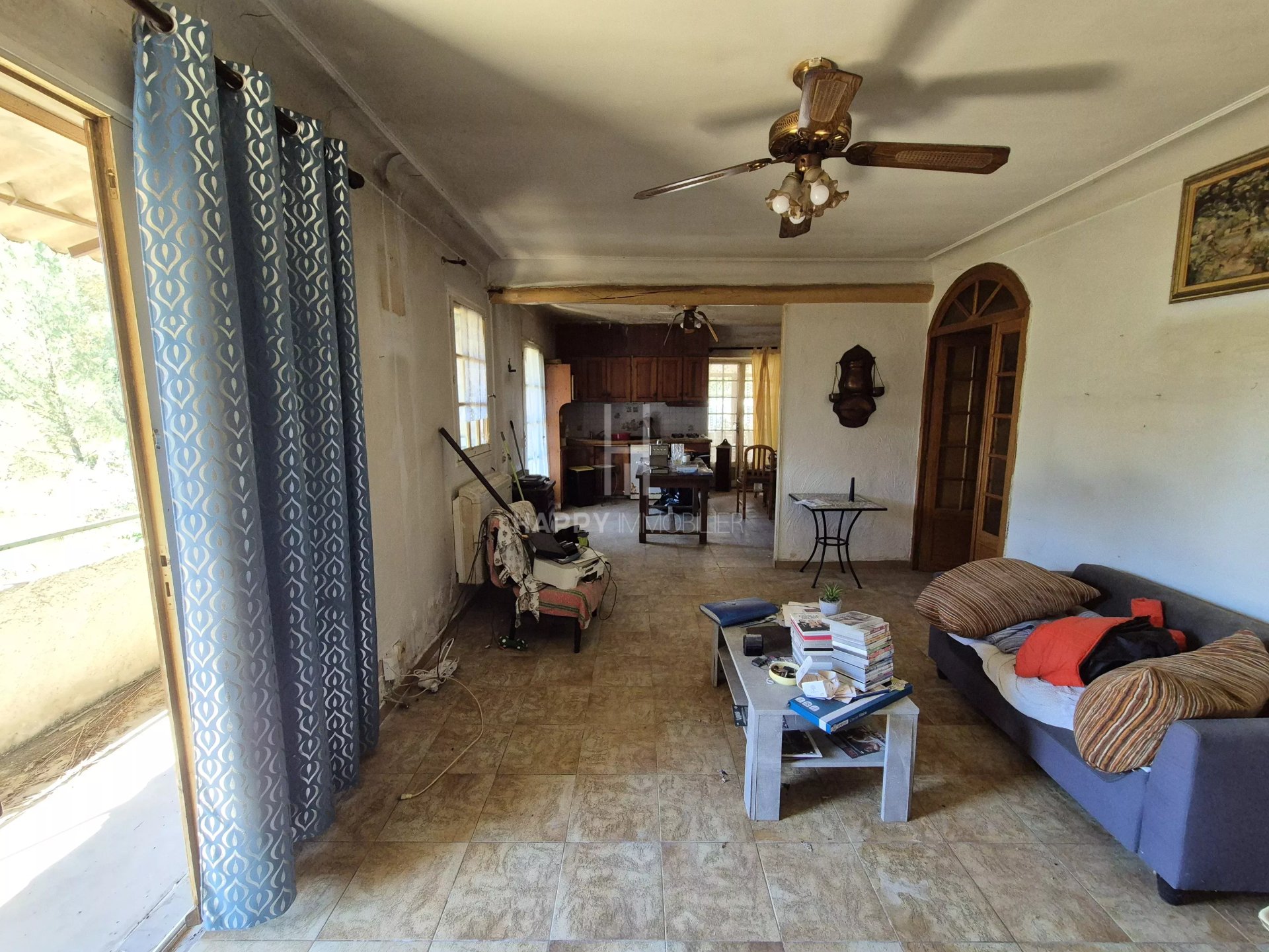 Elle comprend aujourd'hui : une maison d'habitation d'environ 110m2, un garage de même surface en dessous, une grande piscine 11 x5m ainsi que plusieurs dépendances (entre 18 et 55m2) ayant l'avantage d'être toutes cadastrées. L'ensemble est à rénover entièrement mais offre un excellent potentiel pour devenir votre havre de paix en Provence.