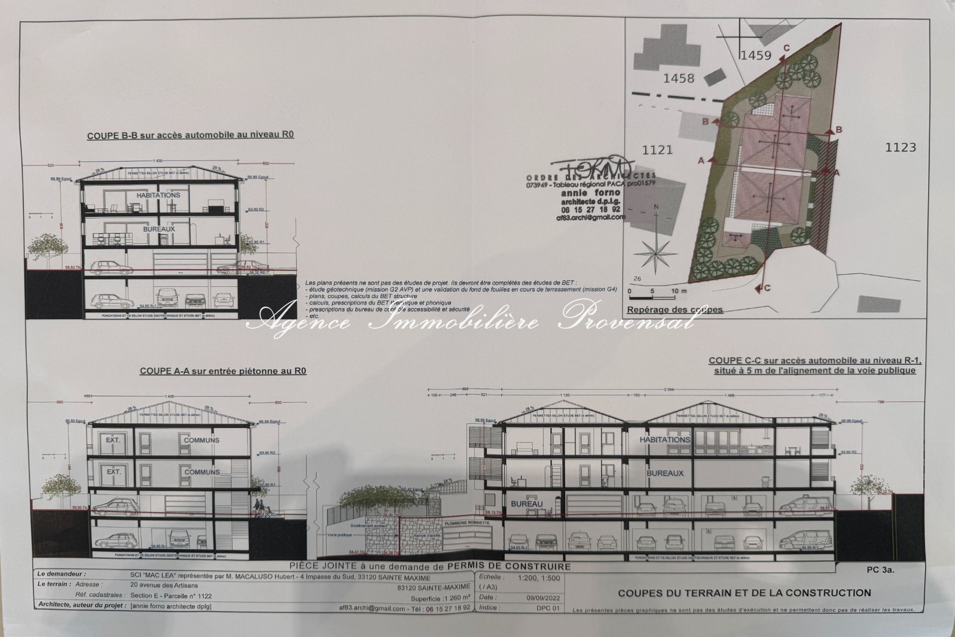 À vendre à Sainte-Maxime, dans une zone artisanale recherchée, terrain constructible d'une superficie de 1 260 m², idéal pour un projet professionnel ou mixte habitation/bureaux.