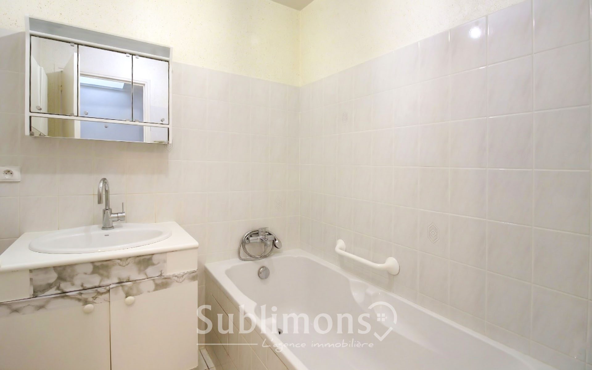 L'appartement dispose d'une cuisine aménagée, fonctionnelle. La salle de bains, équipée d'une baignoire, et les toilettes séparées complètent cet ensemble.