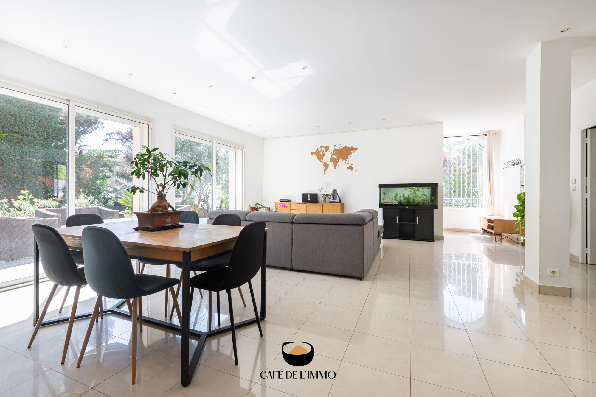 Agencée sur 165 m2, cette maison de type 5 séduit dès l'entrée par ses volumes généreux et sa luminosité omniprésente, portée par une quadruple exposition. La pièce de vie, spacieuse et baignée de lumière, s'ouvre naturellement sur l'extérieur. La cuisine indépendante, prolongée vers le jardin côté piscine, invite à profiter pleinement des beaux jours. Une arrière-cuisine fonctionnelle complète cet espace.