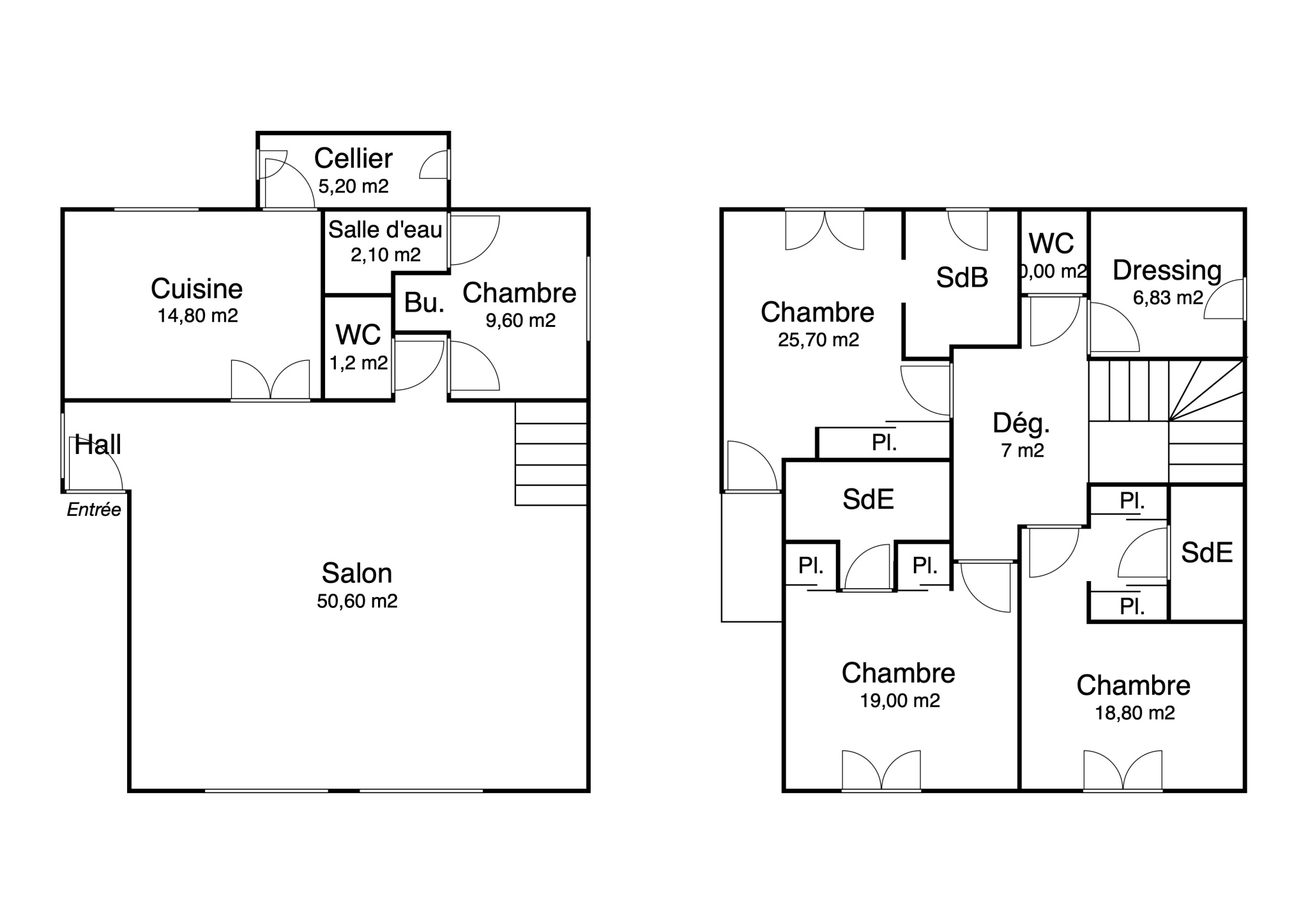 Un bel escalier mène à l'étage, où trois grandes chambres de 19, 19 et 25 m2 proposent chacune leur salle d'eau. La suite parentale dispose quant à elle d'une salle de bain avec WC, et d'un balcon à la vue dégagée. Un grand dressing ainsi qu'un autre WC indépendant complètent ce palier. Chaque espace a été pensé pour le confort et l'intimité.