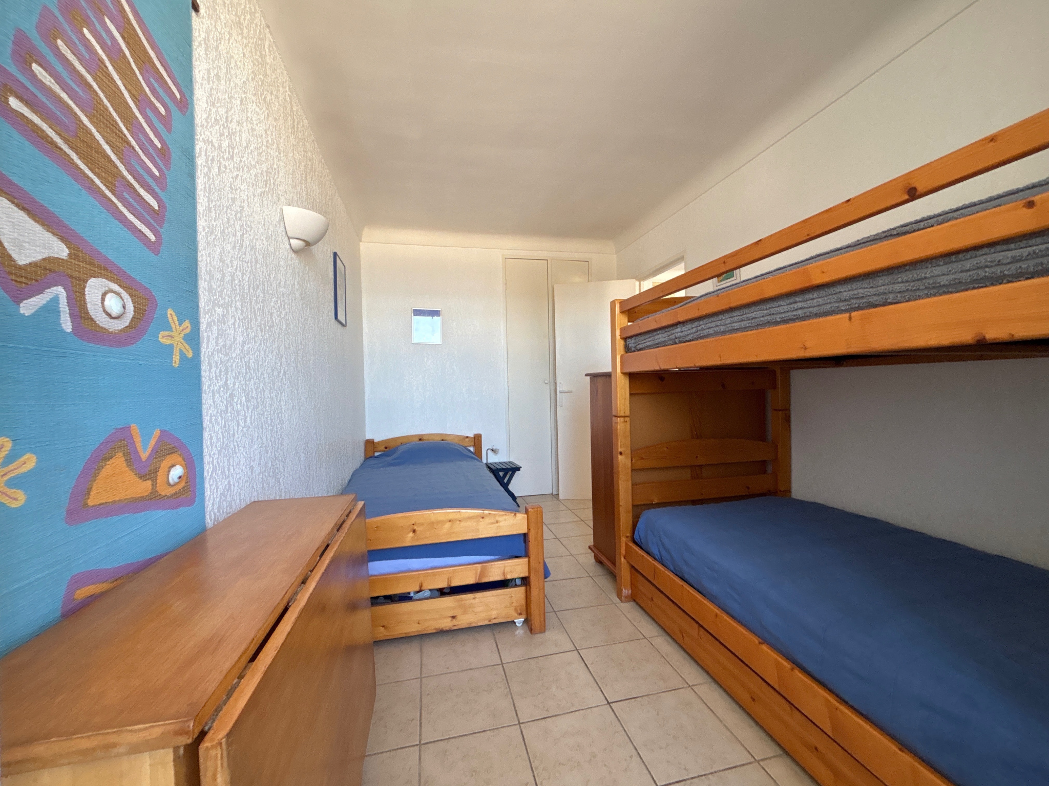 Côté nuit, une chambre avec couchages et rangements permet d'accueillir famille et amis.