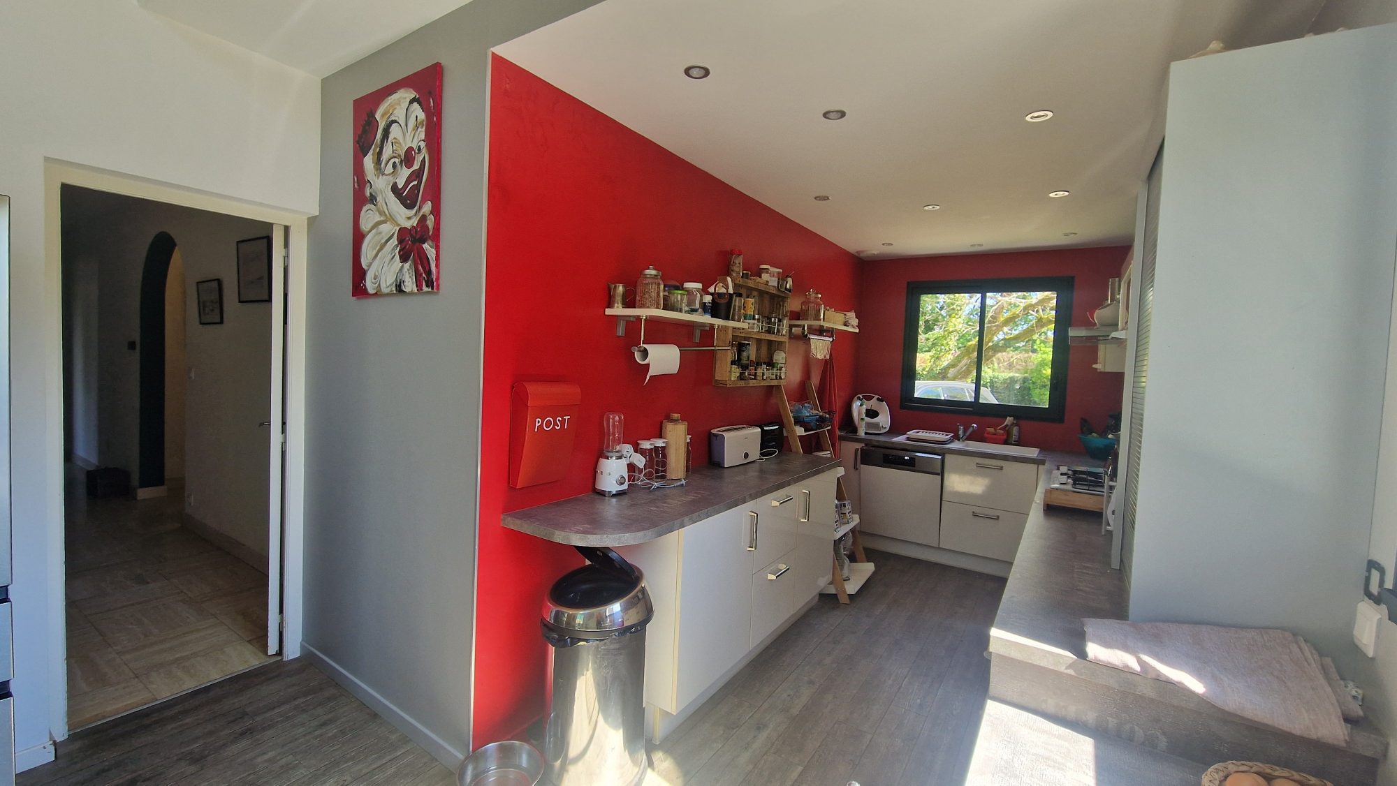 Vouillé proche bourg, charmante propriété d'environ 242m². Elle se compose d'une maison principale d'environ 140m² offrant une entrée, un salon/séjour avec poêle à granulés, une cuisine équipée avec espace repas, un bureau, un dégagement, une salle de bains avec baignoire, douche et wc, 2 chambres, un dressing, une véranda.