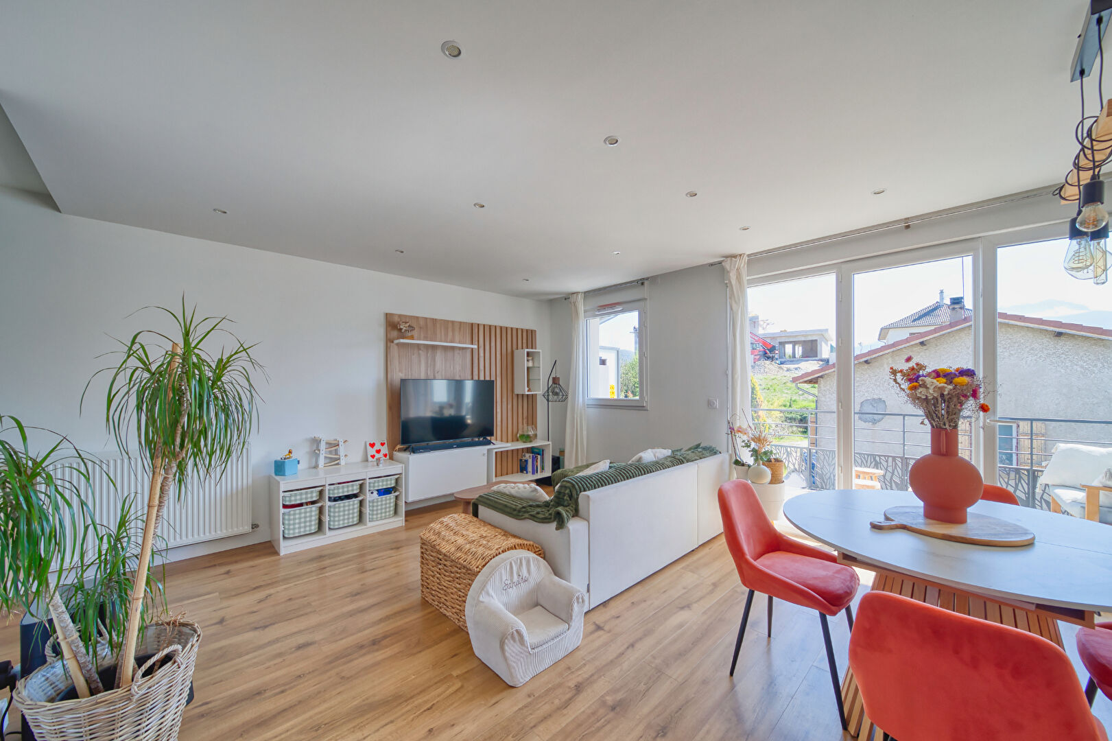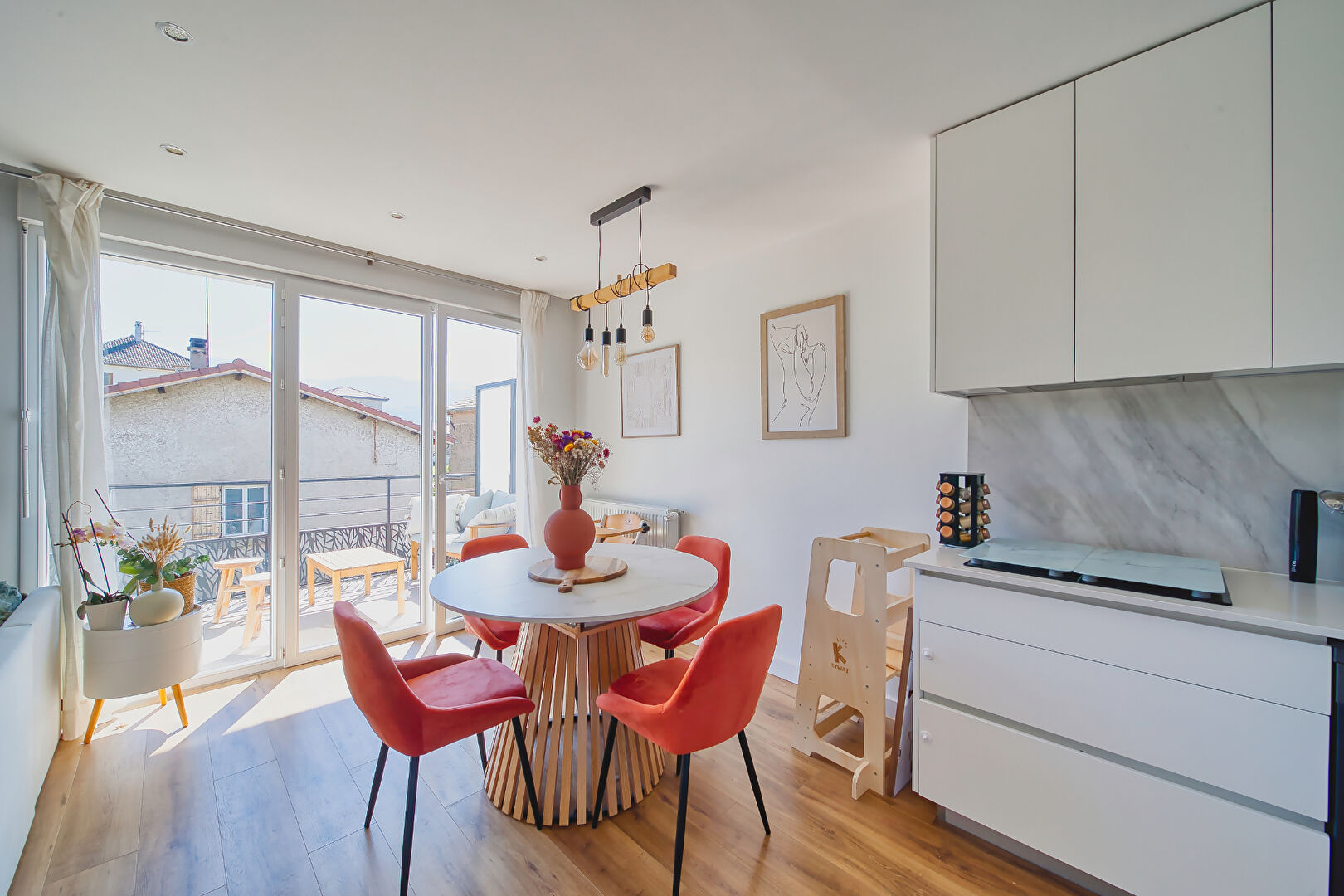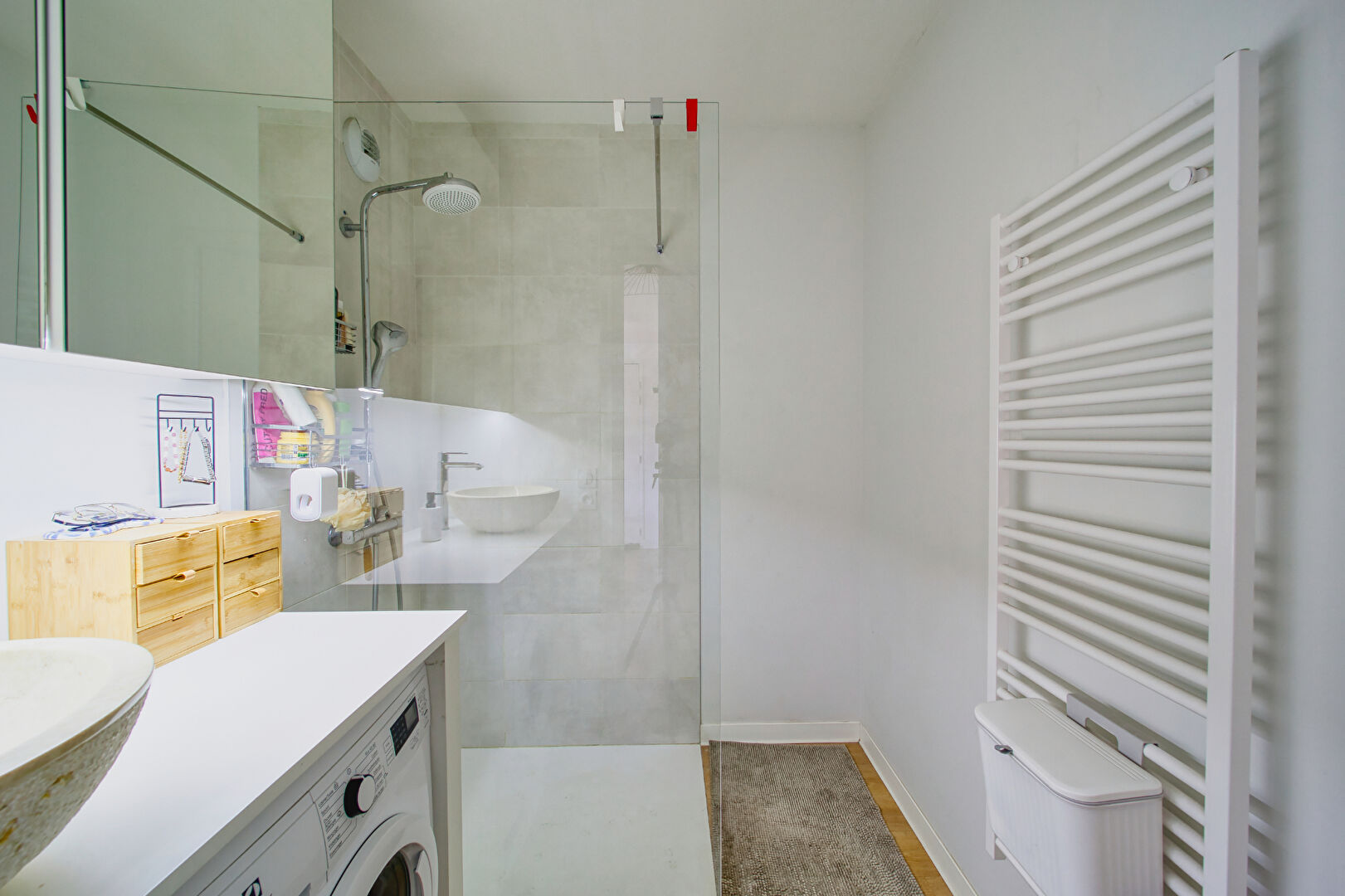 D'une entrée avec placard, une belle pièce de vie lumineuse avec cuisine ouverte, entièrement équipée et aménagée, d'un accès à une terrasse de 10m² exposée Est, de deux chambres avec placards, d'une salle d'eau contemporaine avec douche, et un WC séparé.