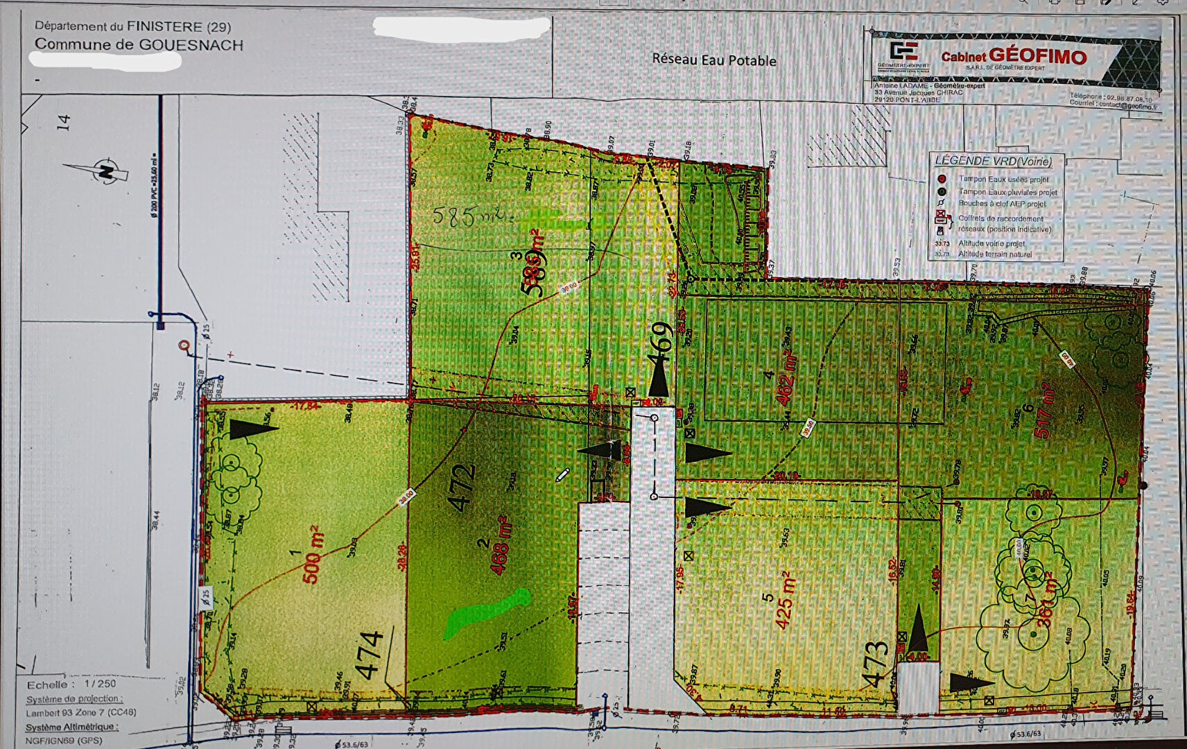 Beau terrain constructible de 468 m², plat et idéalement situé en plein bourg de GOUESNAC'H. (LOT 2 sur le plan).