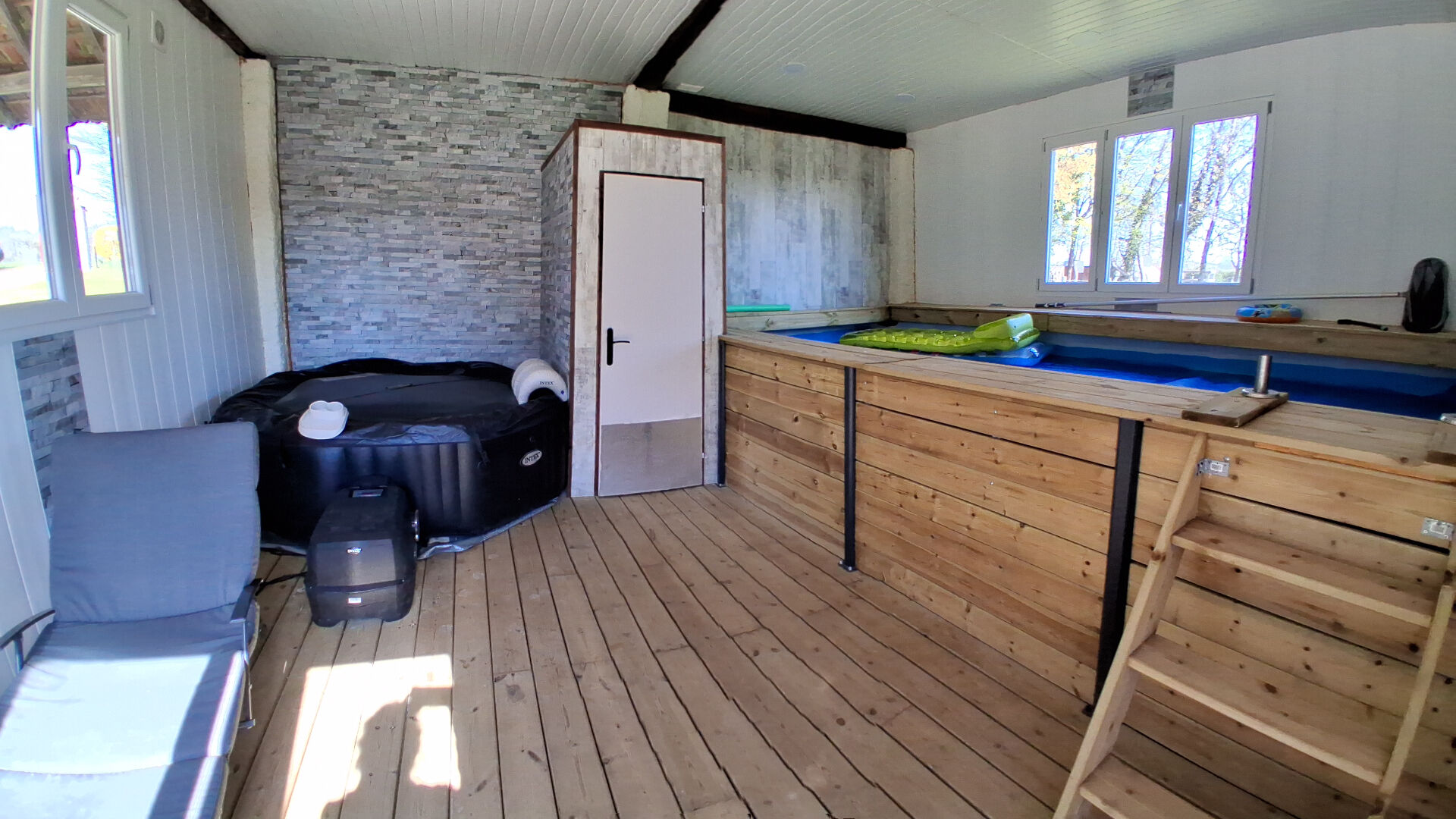 Ferme bressane en briquette et colombage offrant sur 125 m² habitable : séjour avec cheminée à foyer ouvert, cuisine équipée ouverte sur salle à manger, un couloir lumineux desservant deux chambres, une salle d'eau, un WC et à l'étage : une mezzanine et une chambre avec sanitaires complets. Bâtiment séparé avec SPA et piscine hors-sol chauffée. Le tout sur environ 2 855 m² de terrain bénéficiant d'une vue dégagée sur la campagne environnante avec grande terrasse dallée.
