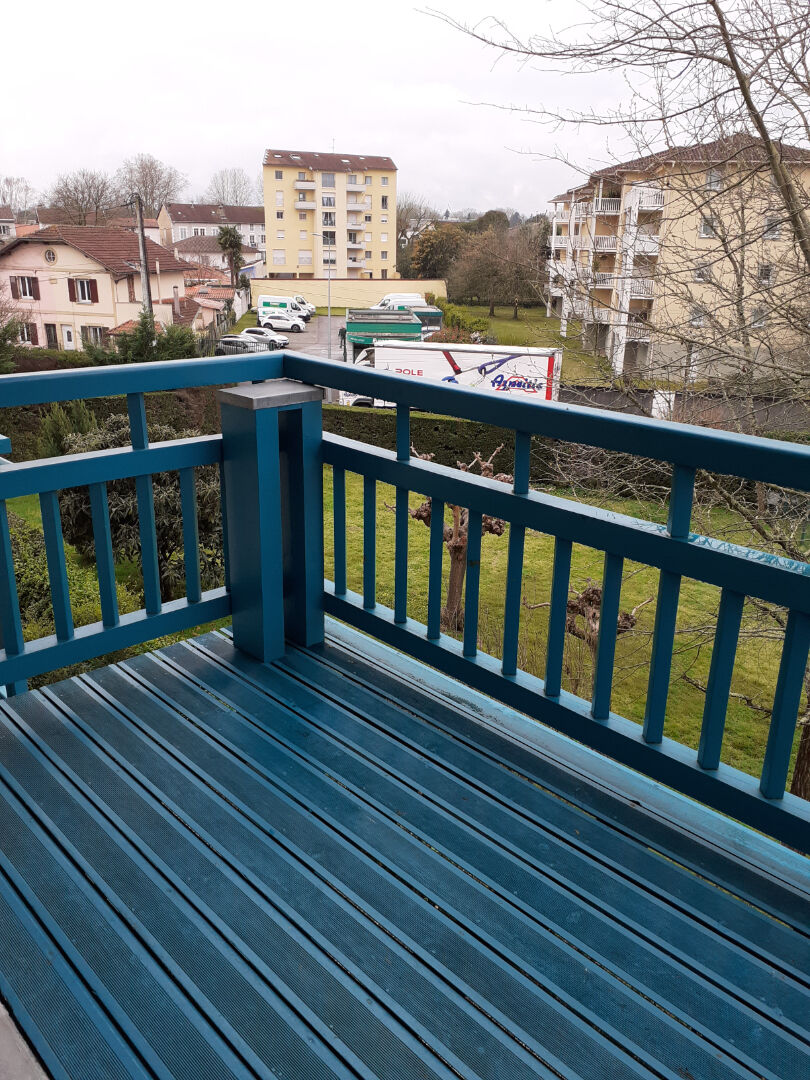 Appartement de 62 m² comprenant une entrée, une cuisine indépendante, un cellier, un séjour donnant sur le balcon, une salle de bains, un toilette, une chambre avec un placard et une chambre avec un balcon.