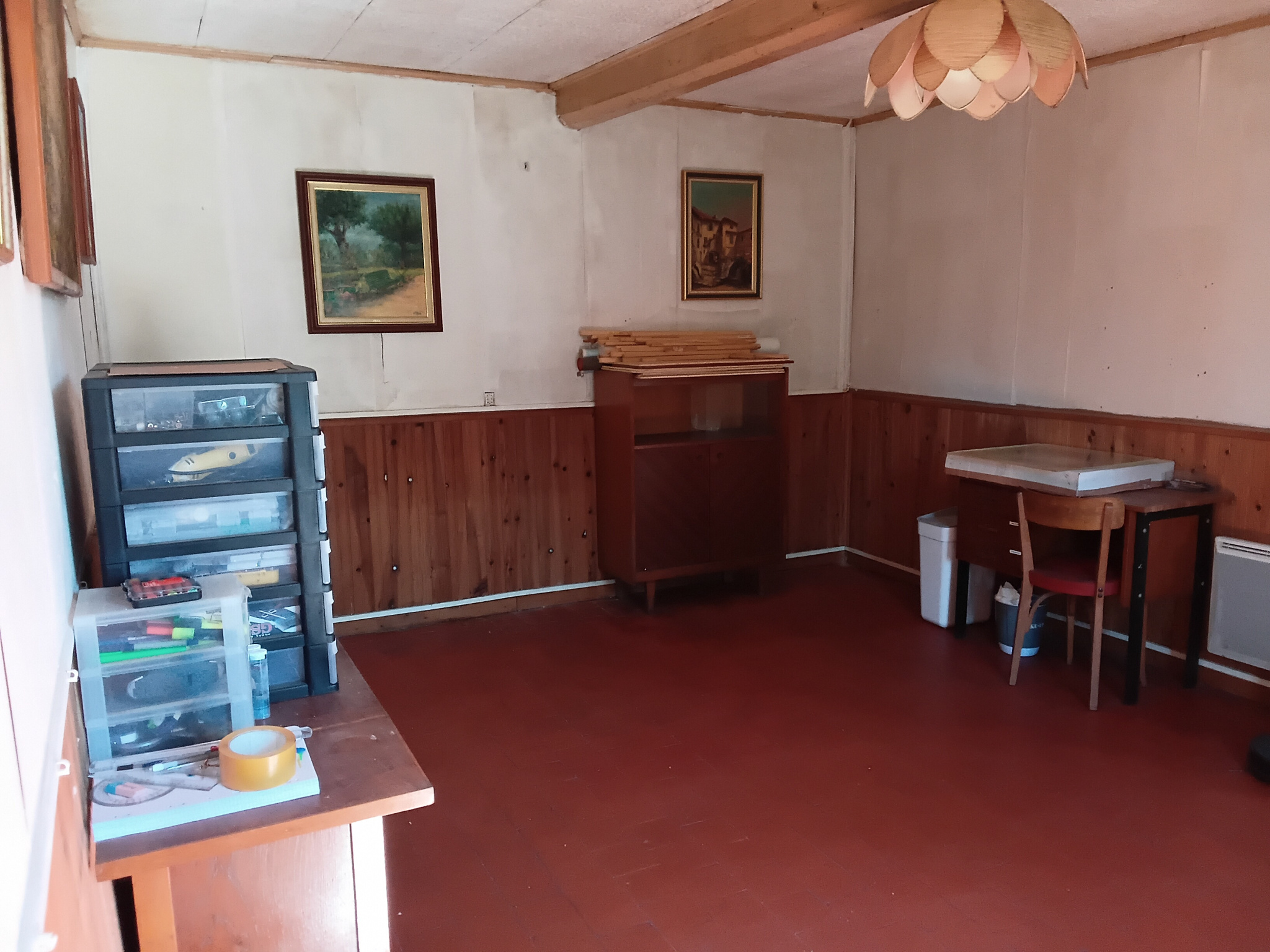 maison de 106 m2, avec une cuisine, un séjour, un salon, à l'étage une chambre palière, une chambre et un bureau. La maison dispose de fenêtres en double vitrage PVC, radiateur électrique, et d'une cheminée ouverte. L'assainissement est individuel.
