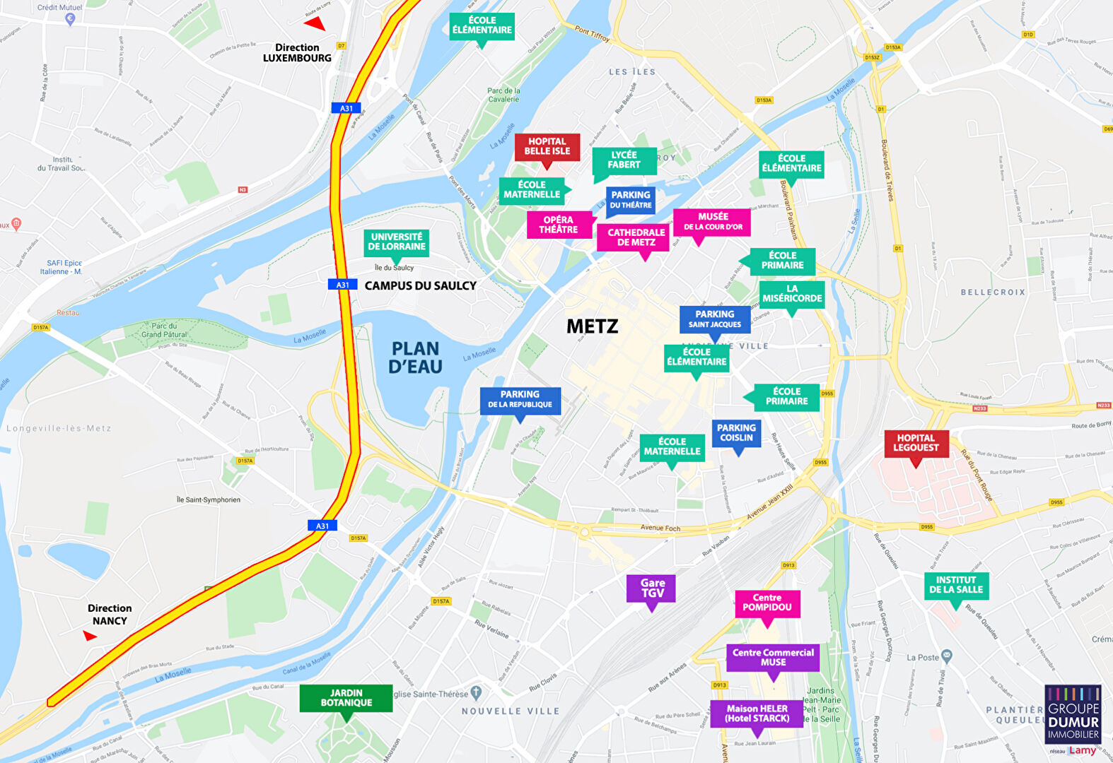 METZ HYPERCENTRE : Proche de tous les lieux de convivialités les plus agréables du centre ville, des commerces, à 3 minutes à pied des bus et du Mettis, à 15 minutes à pied de la gare et proche de l'autoroute A31 ;