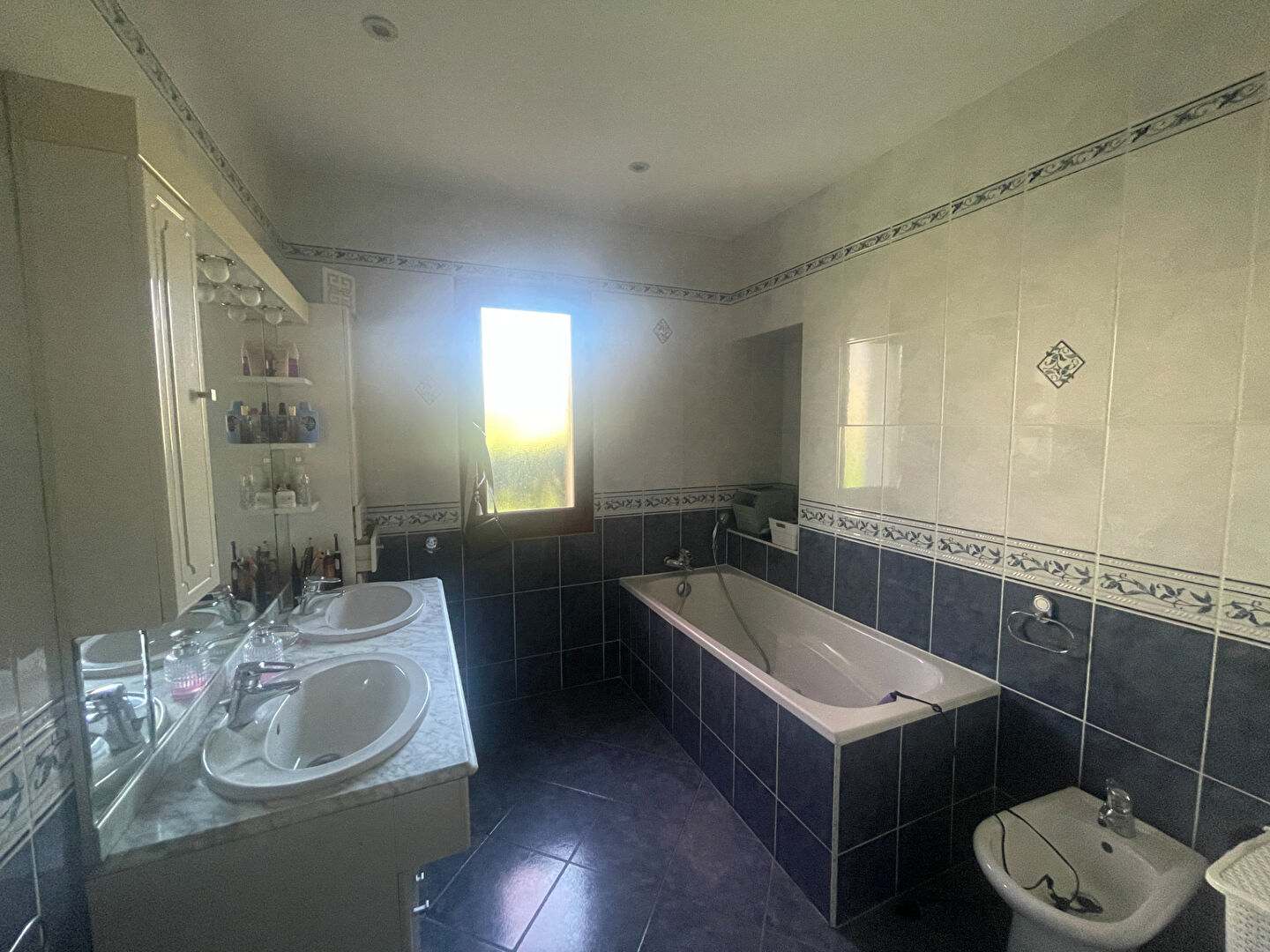 Vous accéderez au rez-de-chaussée par une belle entrée, desservant une cuisine aménagée et équipée semi ouverte sur une agréable pièce de vie donnant accès à la terrasse et au jardin, un dégagement dessert trois chambres, une salle de bains avec baignoire et douche ainsi que deux vasques, un WC.