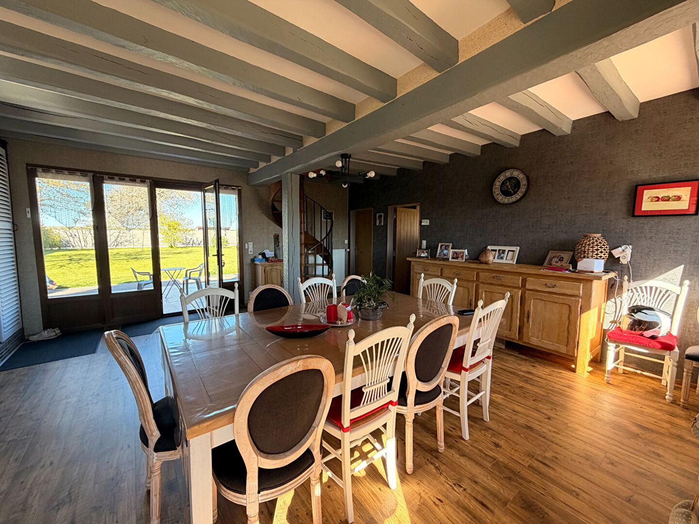 Dès l'entrée, vous serez charmé par une spacieuse et lumineuse pièce de vie de plus de 60 m², comprenant séjour et salon agrémentés d'une cheminée avec insert.