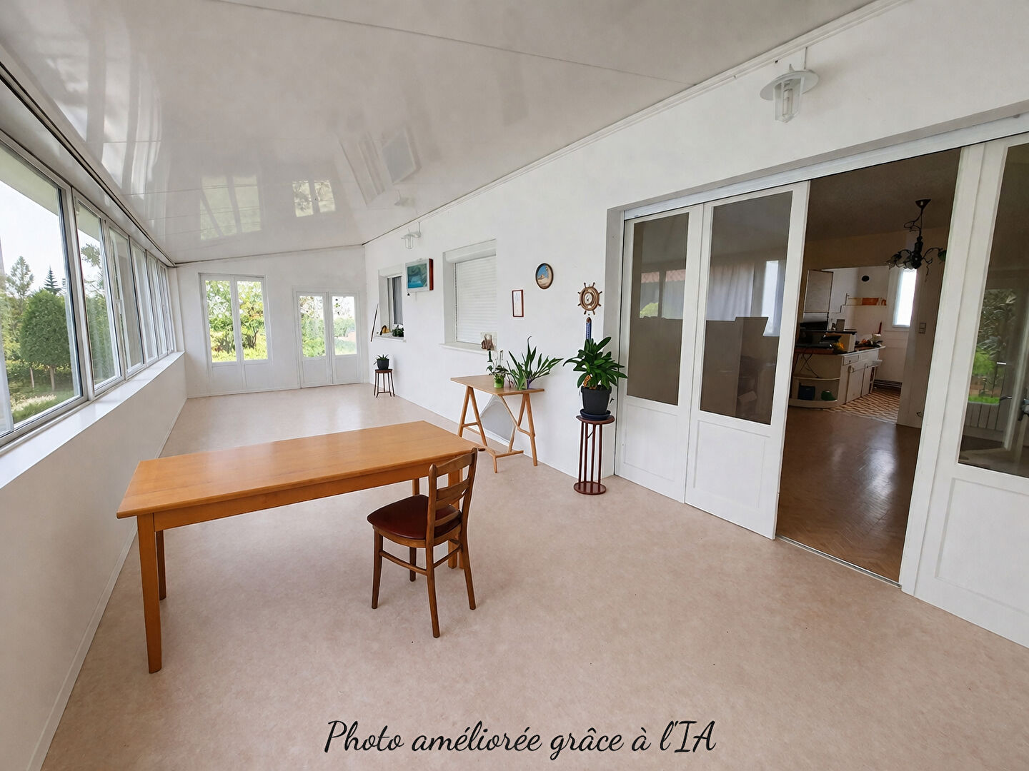 Au calme, à proximité des commodités et du centre-ville, dans un quartier agréable et recherché, maison de plain pied offrant une entrée avec placard, une cuisine, une pièce de vie donnant sur une véranda de plus de 30m2, trois chambres, un wc indépendant, une salle d'eau, un bureau, un cellier.