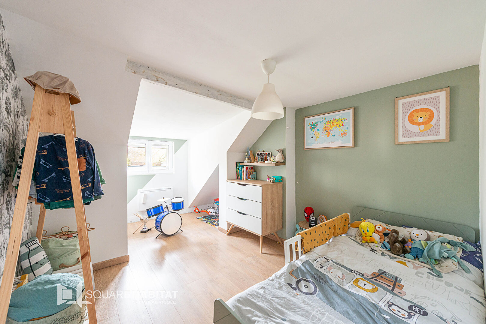 Cette maison développe environ 115 m² habitables et séduit par ses beaux volumes et son ambiance chaleureuse.