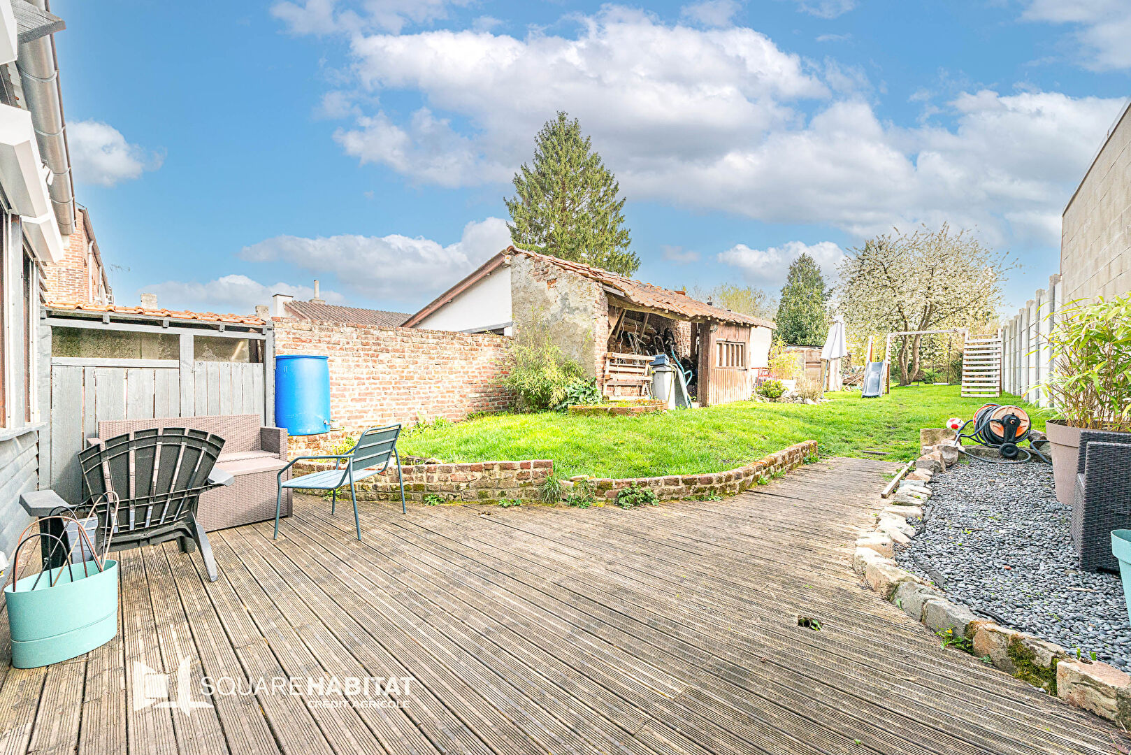 À l'extérieur, vous profiterez d'une terrasse, d'un agréable jardin entièrement clos, parfait pour les beaux jours.