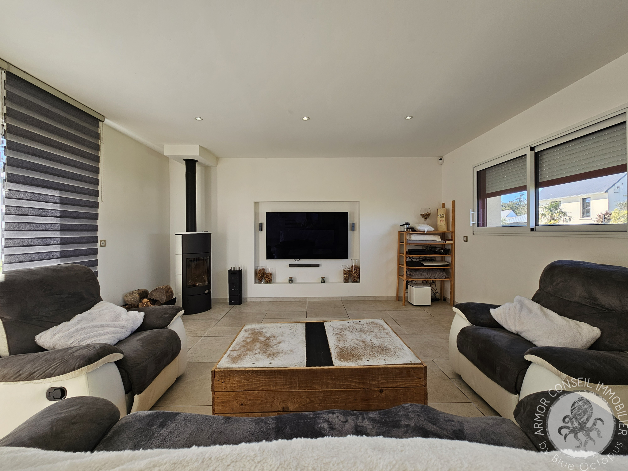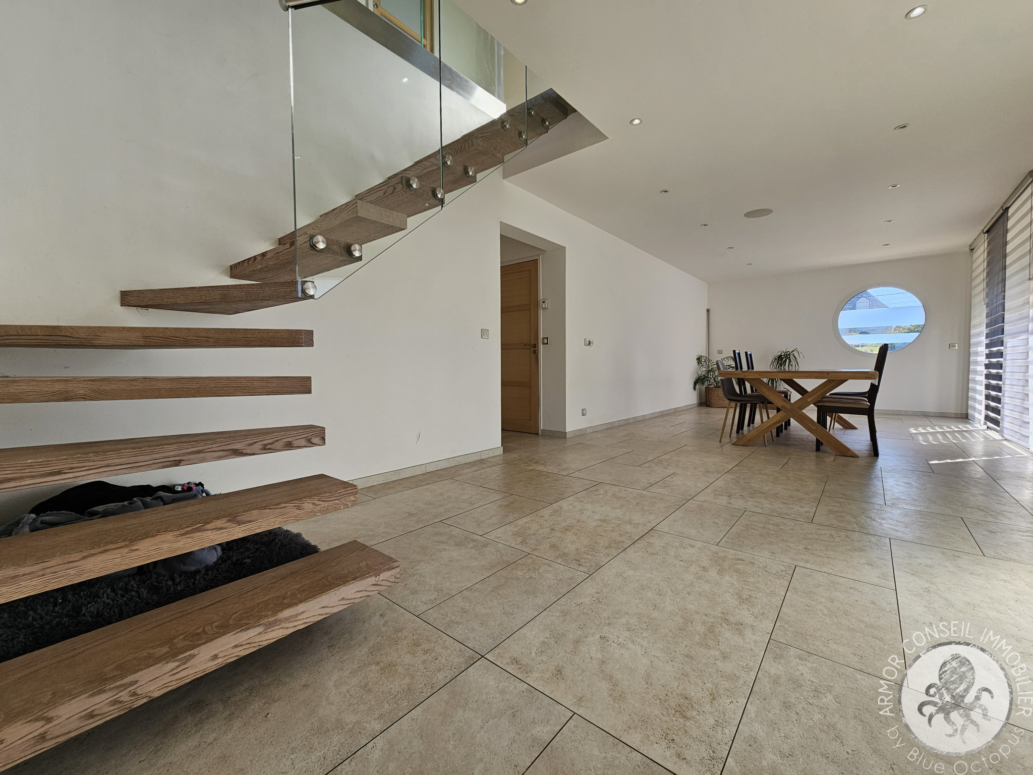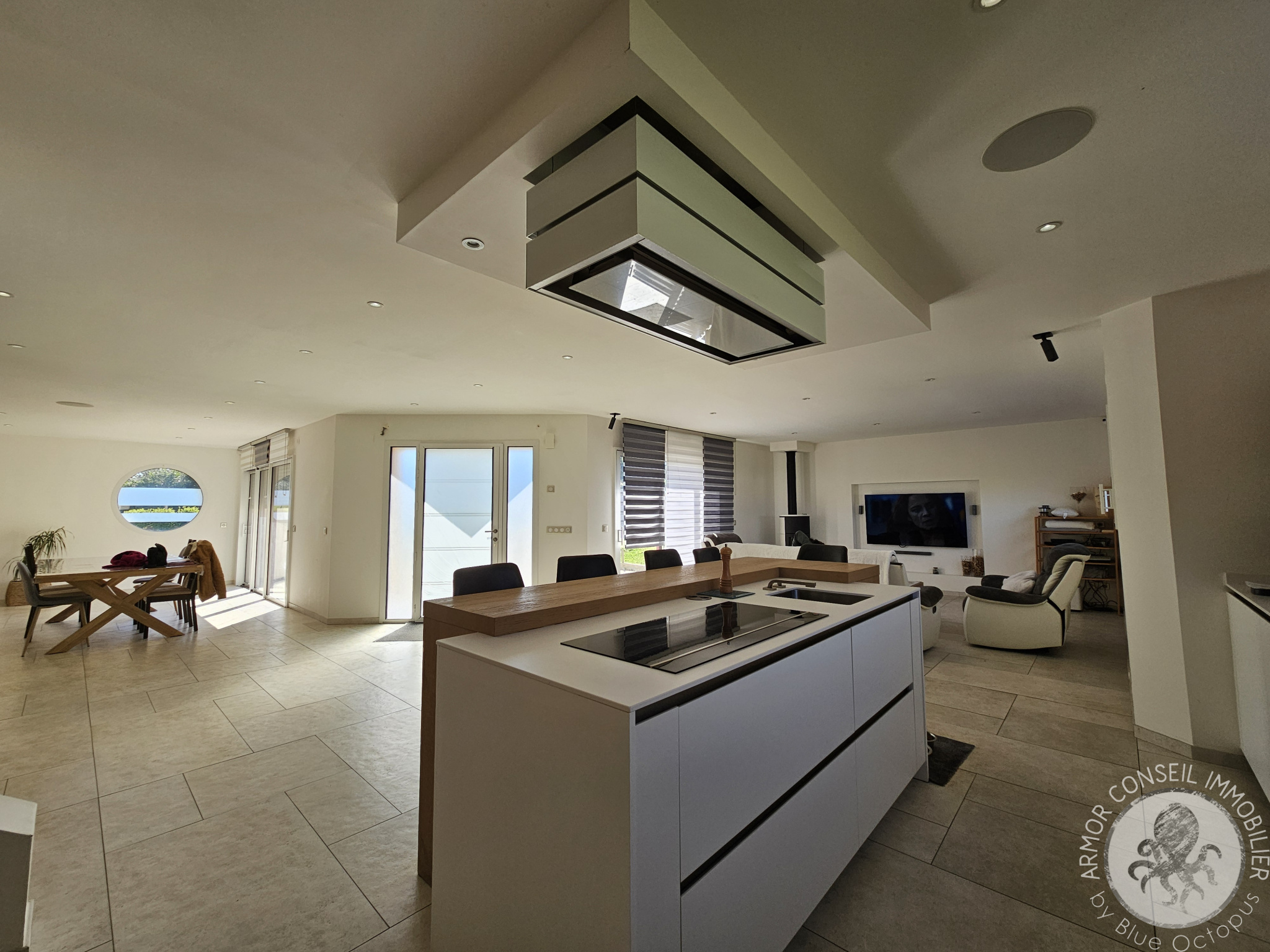Dès l'entrée, le ton est donné par son immense espace de vie qui se compose d'un salon confortable, un séjour lumineux et sa cuisine ouverte et moderne.