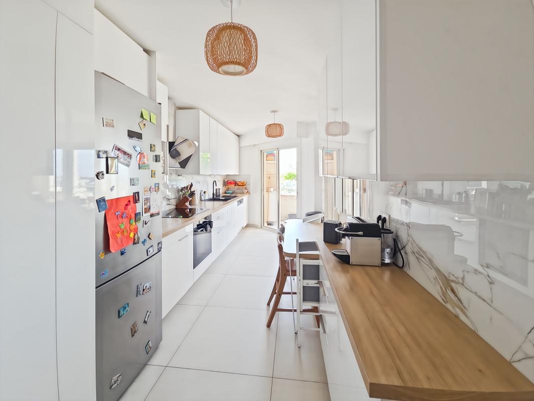 Le séjour de 36 m², baigné de lumière, s'ouvre sur une belle terrasse de 15 m² offrant une vue mer ainsi qu'une vue dégagée sur l'observatoire. La cuisine semi-indépendante, moderne et élégamment séparée par une verrière, ainsi que la suite parentale, bénéficient également de cet accès extérieur. Un toilette invités complète cet espace de vie.