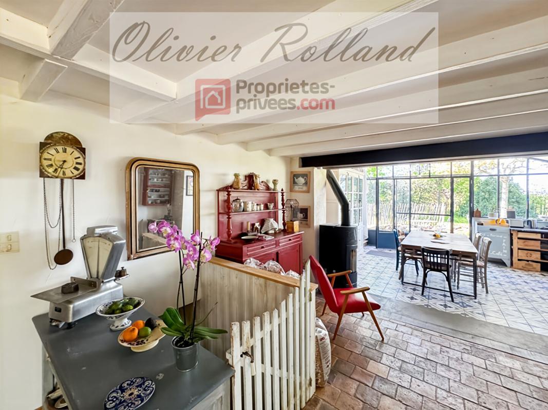 Cuisine dînatoire (20 m²) : Aménagée et équipée avec un piano de cuisson, elle dispose d'une superbe verrière en triple vitrage ouvrant sur la nature. Un poêle à pellets (2020) assure un confort thermique optimal.