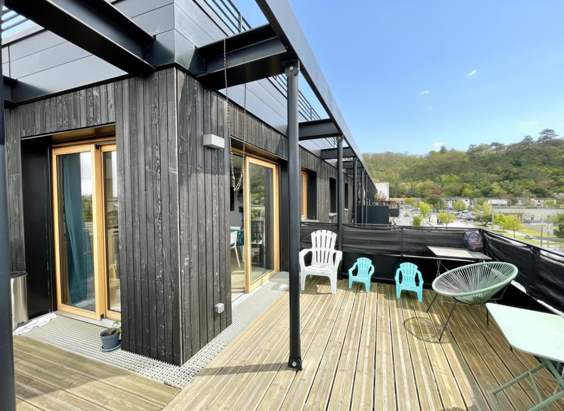 Votre futur lieu de vie se compose d'une entrée avec placard, d'un salon/séjour/cuisine américaine ouverte d'env 35 m2 avec baies vitrées donnant sur la terrasse d'env 20 m2 exposée Sud/Sud-Ouest, d'une chambre d'env 11,80 m2, d'une chambre avec salle de bains attenante d'env 14,80 m2, d'un bureau d'env 7,70 m2, d'une salle d'eau ainsi que d'un wc/buanderie.