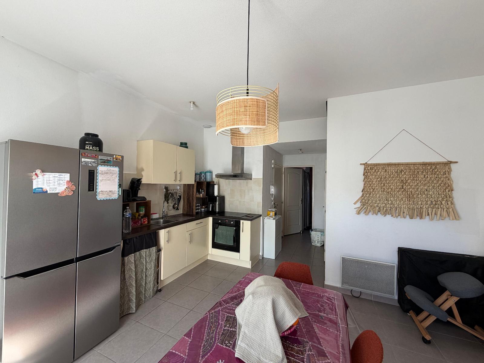 PERPIGNAN QUARTIER DES FLEURS - SPECIAL INVESTISSEURS - Appartement F3 duplex + parking, vendu loué, avec locataire en place depuis 2017. Dans une petite résidence récente de 4 appartements, proche de toutes les commodités et du centre ville, bel appartement en duplex situé au 2ème étage et dernier étage, bien entretenu, comprenant un séjour agréable et lumineux avec un coin cuisine aménagée et équipée, une chambre avec placard, wc. A l'étage, un palier desservant une chambre avec placard et une salle de bains. Une terrasse ensoleillée de 8.40m². Honoraires à la charge du vendeur. Montant estimé des dépenses annuelles d'énergie pour un usage standard : entre 634 et 858 euros. Prix moyens des énergies indexés en 2021.