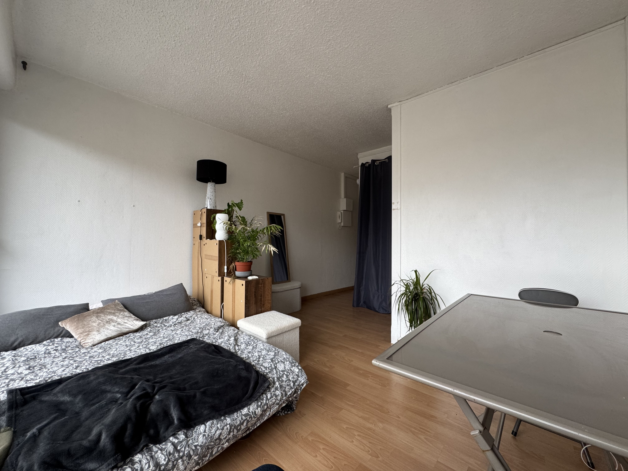 Ce bien, vendu loué, se compose d'une entrée, d'une salle de bain avec WC, et d'une agréable pièce de vie lumineuse, dotée d'une kitchenette fonctionnelle ainsi que d'un placard de rangement. Un balcon vient compléter l'ensemble, offrant un espace extérieur appréciable avec peu de vis-à-vis.