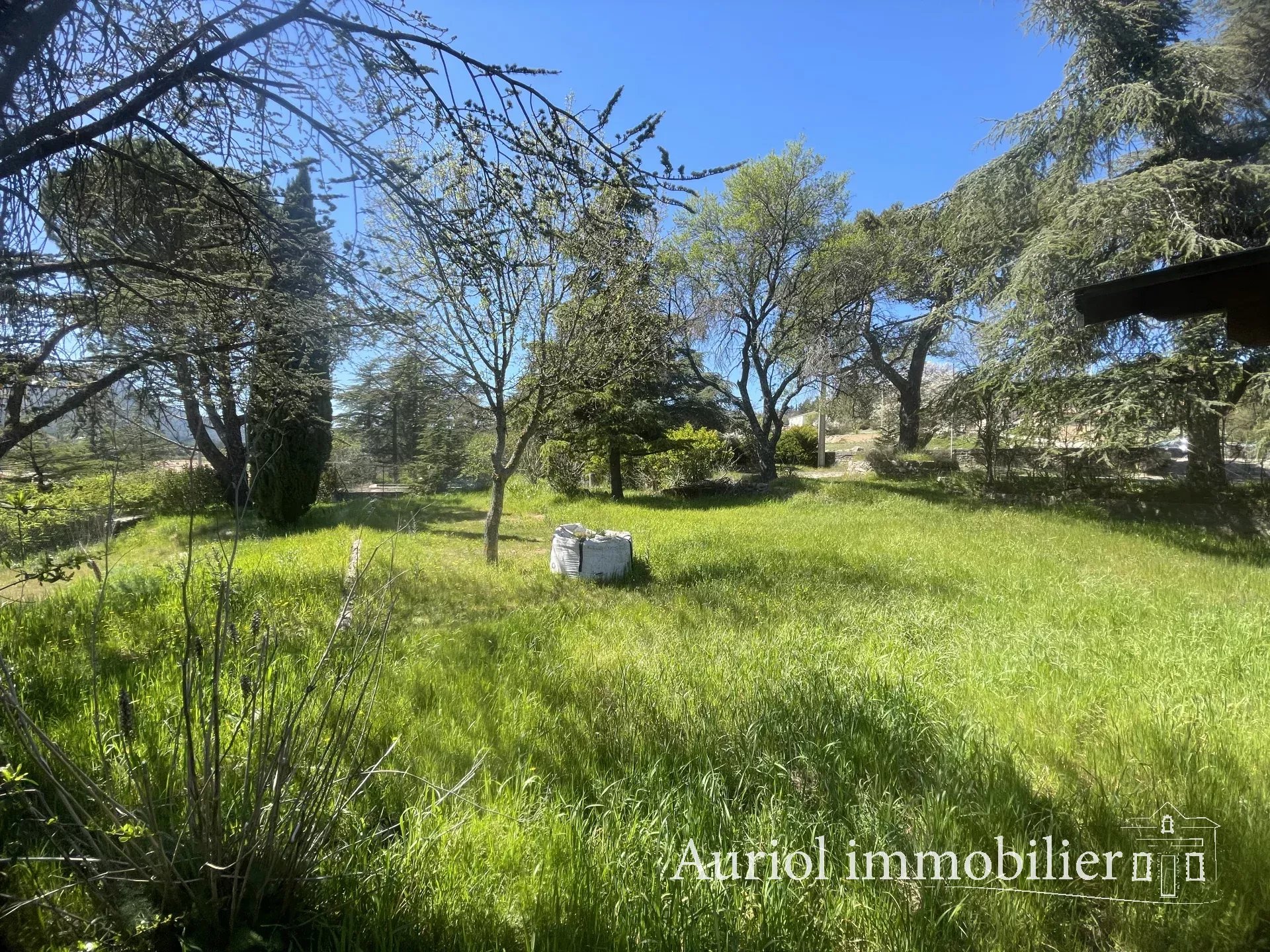Parc arboré de près de 3000 m2 aves piscine.