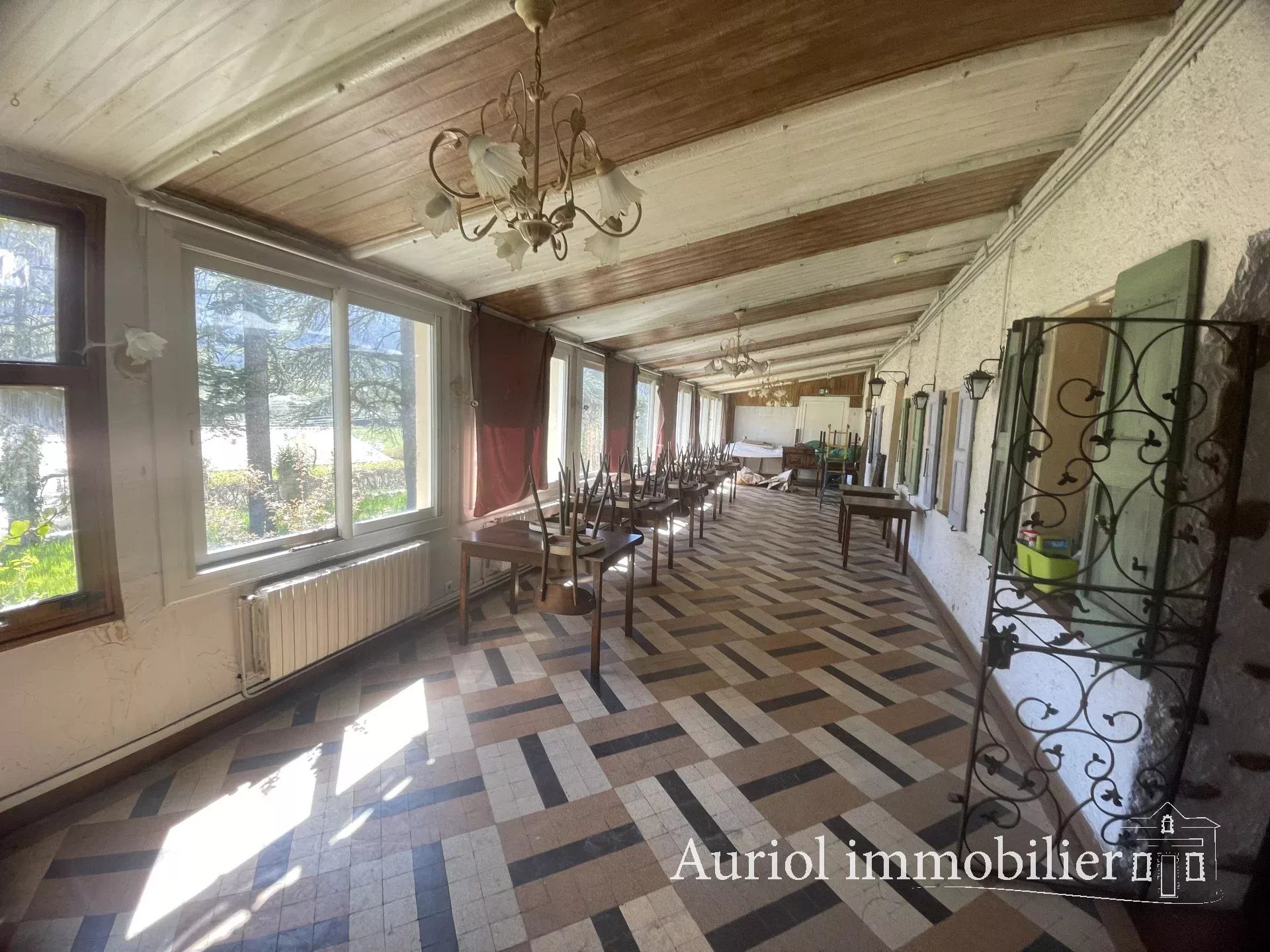12 pièces, 7 chambres, grande salle de restauration, véranda...
