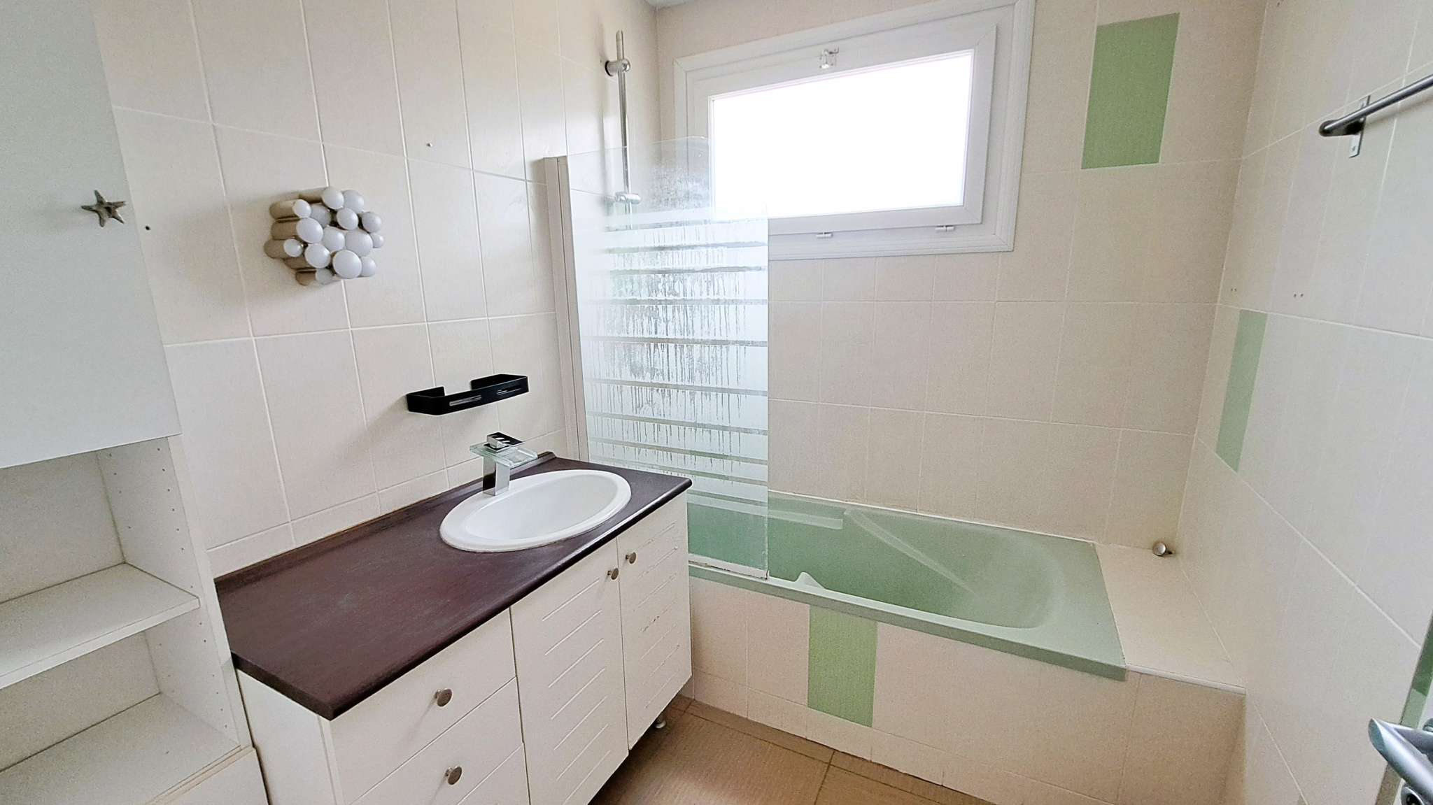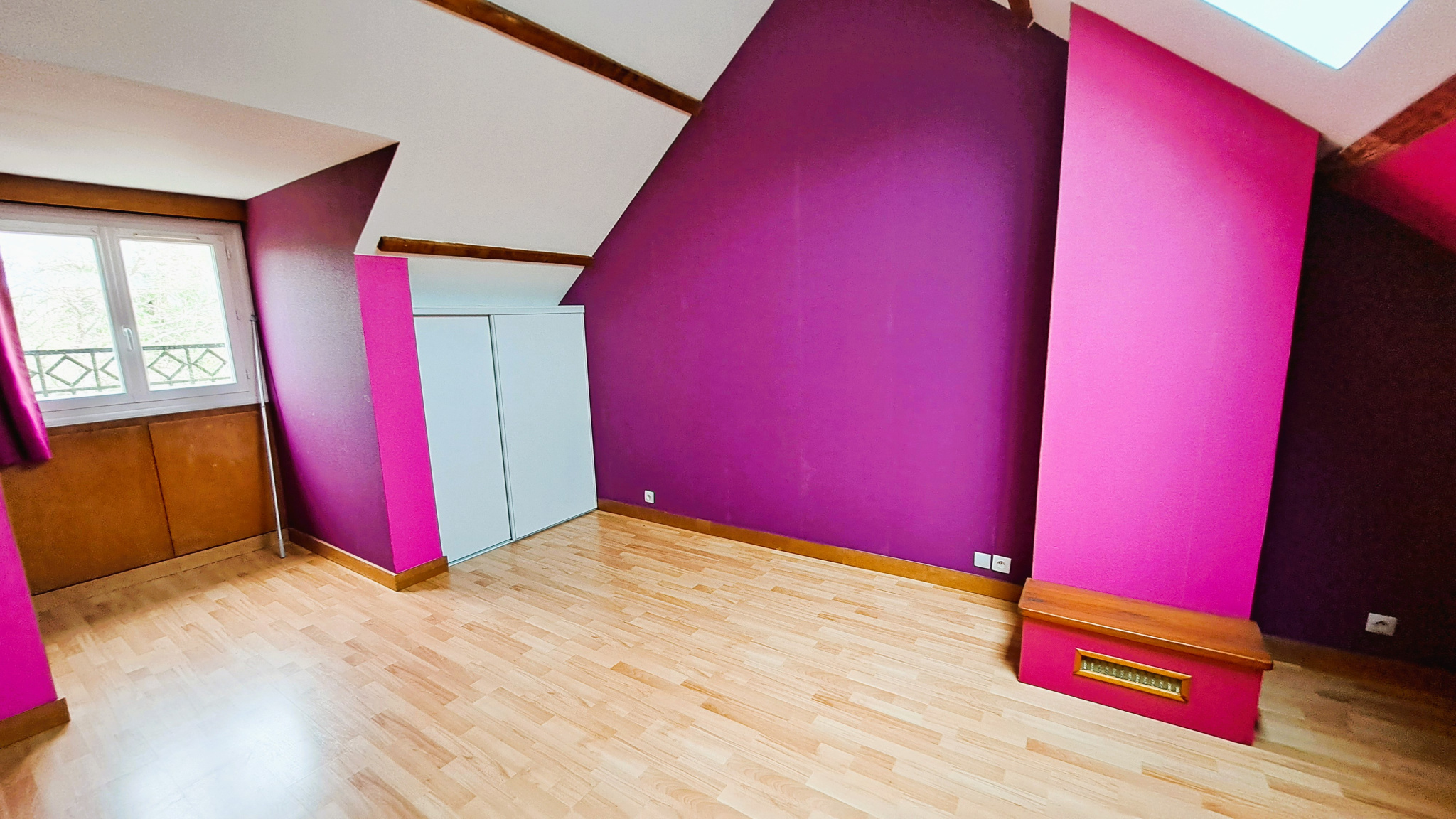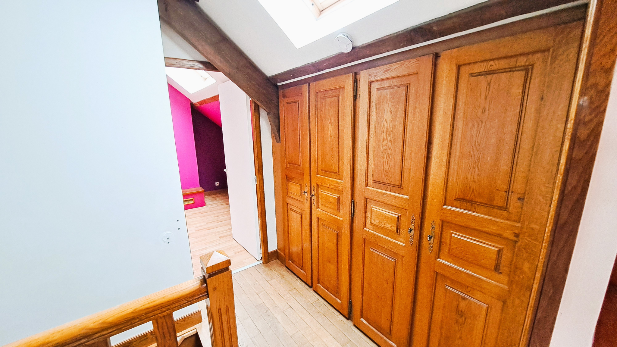 A l'étage : palier avec placards, deux chambre de 17 m2 chacune avec placards, salle d'eau avec wc.
