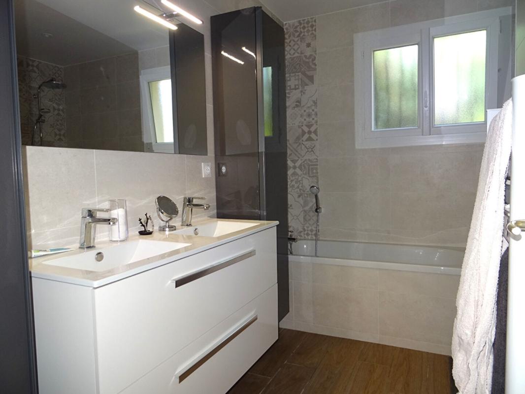 Cette maison rénovée dispose d'une agréable terrasse couverte Est, d'un garage de 24 m² avec abri attenant sur un terrain clos de 740 m².
