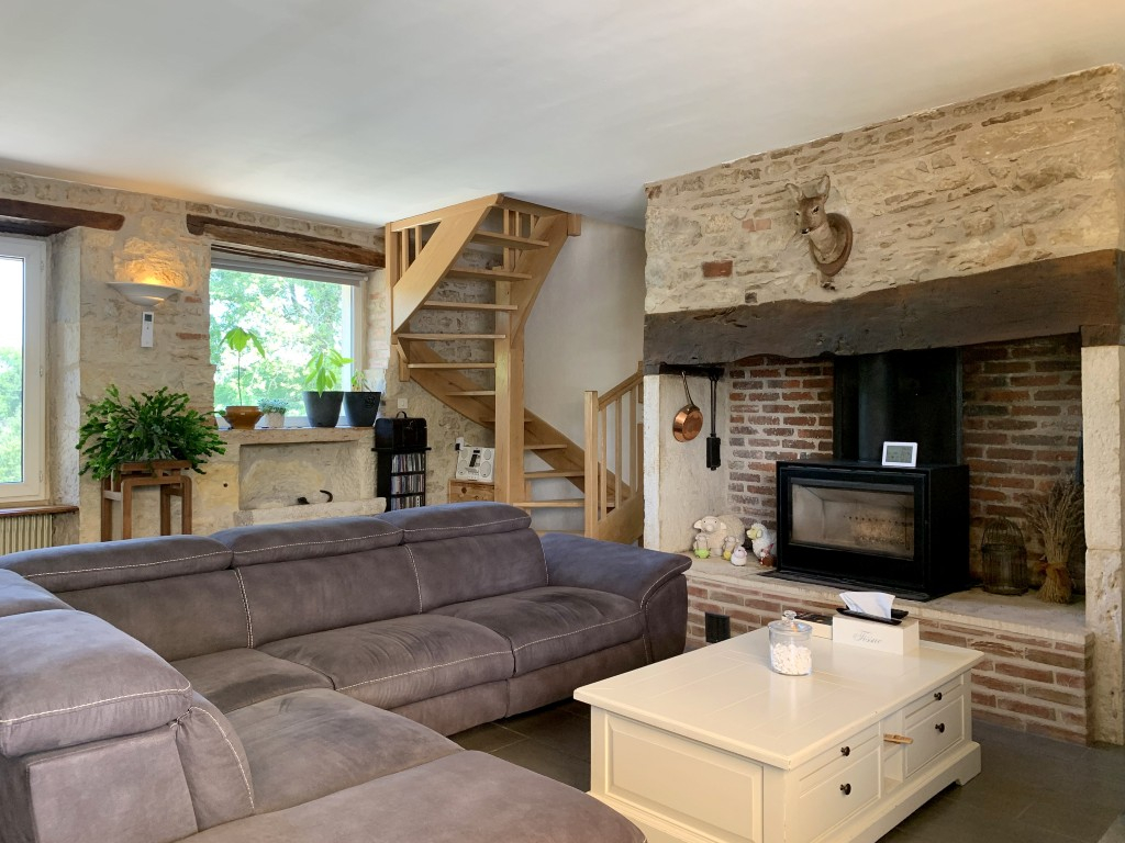 Au niveau principal : entrée avec rangements, vaste pièce de vie de 62 m² comprenant un espace séjour / salle à manger de 33 m² ouvrant sur une grande terrasse exposée sud-est. Cuisine récente de 2022 d'environ 23 m², spacieuse et lumineuse, aménagée et très bien équipée, ouverte sur la véranda et la terrasse. L'ancien cantou, équipé d'un poêle à bois récent, marque la séparation entre ces espaces tout en conservant une circulation fluide.