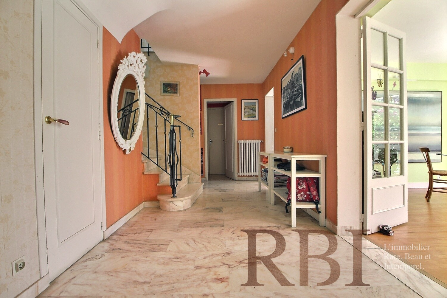 Depuis l'entrée, un grand hall distribue les pièces de vie composées d'un family room/salle tv, d'un séjour double et d'une grande cuisine indépendante entièrement équipée. Au même niveau le dégagement se prolonge et dessert la chaufferie, une première chambre et 2 salles de bains chacune avec wc.