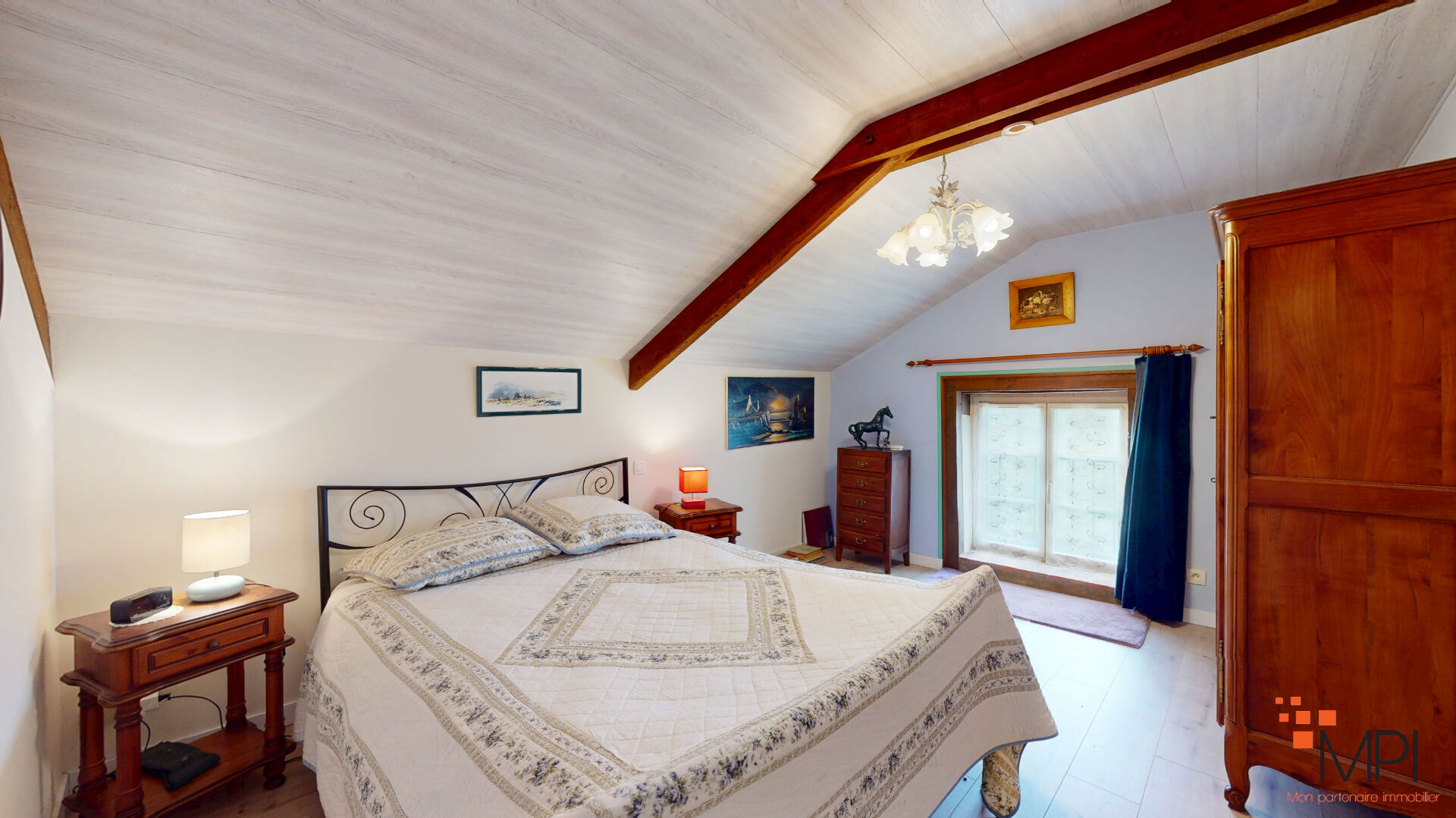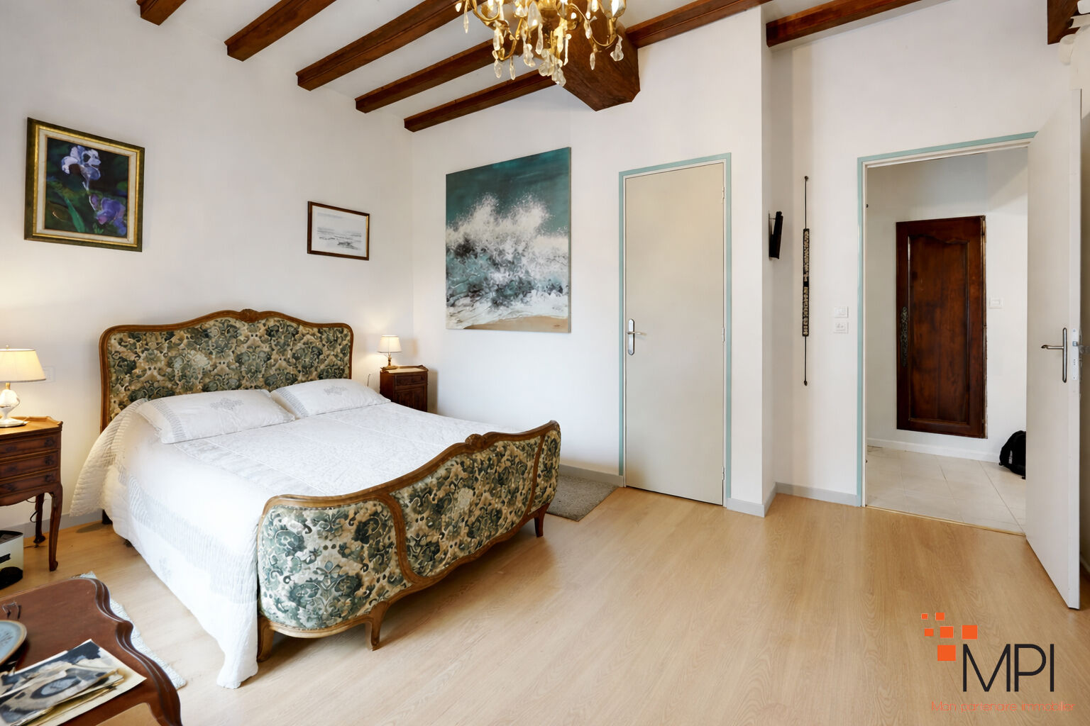 À l'étage, le palier dessert quatre grandes chambres, un bureau ou pièce annexe, une seconde salle d'eau, et un WC indépendant avec lave-mains.
