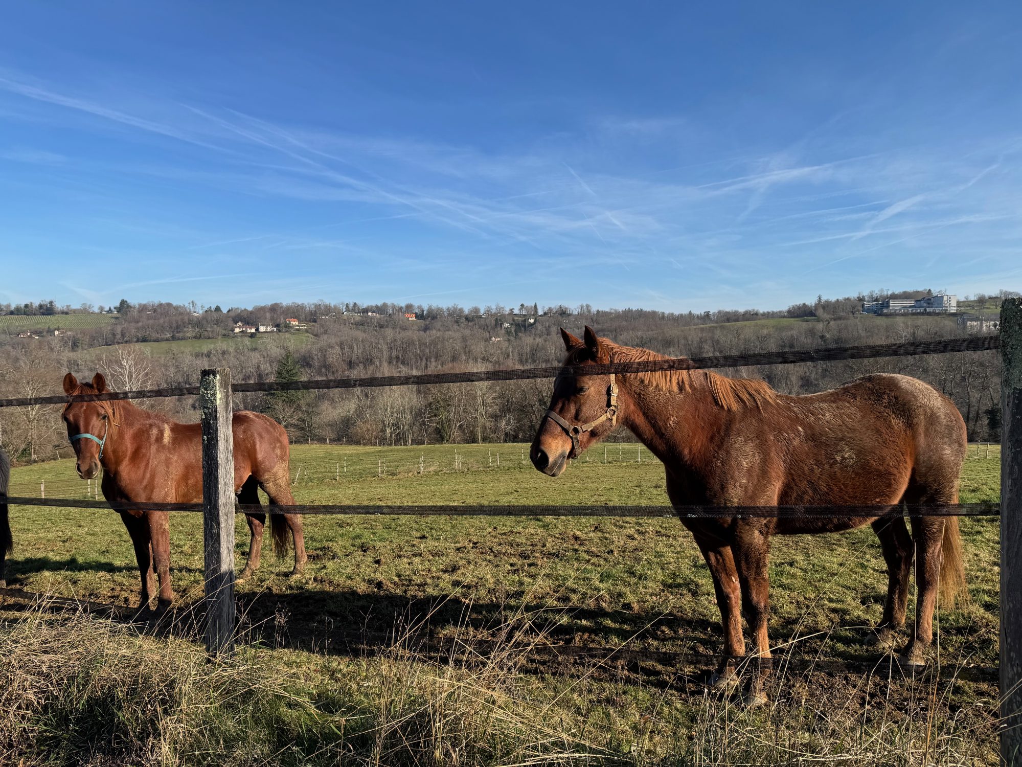 Une propriété idéale pour toute personne recherchant une style de vie rurale et sportive dans un cadre magnifique, à proximité des commodités et de l'hippodrome de Pau. Actuellement utilisée pour l'élevage de chevaux de course Anglo-Arabes, cette ferme d'élevage est accessible par un portail électrique et une longue allée bordée de pâturages de chaque côté. Les pâturages sont sécurisés par des clôtures, équipés d'abris de prairie et d'abreuvoirs. Un autre pâturage se trouve à l'arrière de la maison, avec 8 boxes et 3 boxes de poulinage. L'ensemble des terres est visible depuis la maison. À flanc de colline, à l'arrière, se niche un petit vignoble.