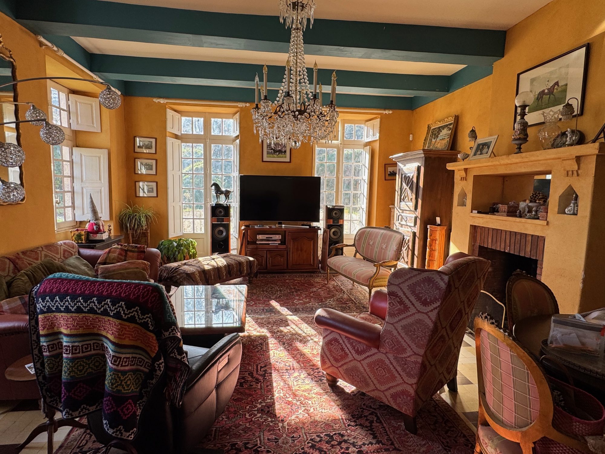 Actuellement, la maison comprend quatre chambres, trois salles de bains (dont deux attenantes), une buanderie avec dressing attenant, un grand salon traversant, une immense salle à manger donnant accès à une très vaste salle de billard/bureau, ainsi qu'une cuisine traditionnelle avec des espaces de rangement à l'arrière. Un appartement d'amis, nécessitant une rénovation, complète l'ensemble. Les combles, autrefois utilisés comme chambres de bonnes, pourraient être aménagés en chambres supplémentaires. La maison est orientée à l'est, ce qui permet aux pièces principales de bénéficier d'une belle luminosité.