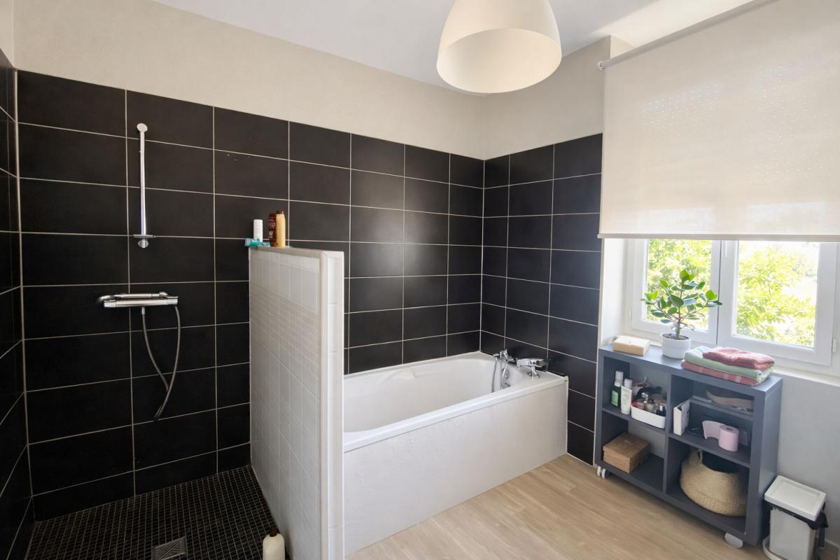 o Une salle de bains (douche + baignoire + WC), une salle d'eau avec WC, un WC indépendant
