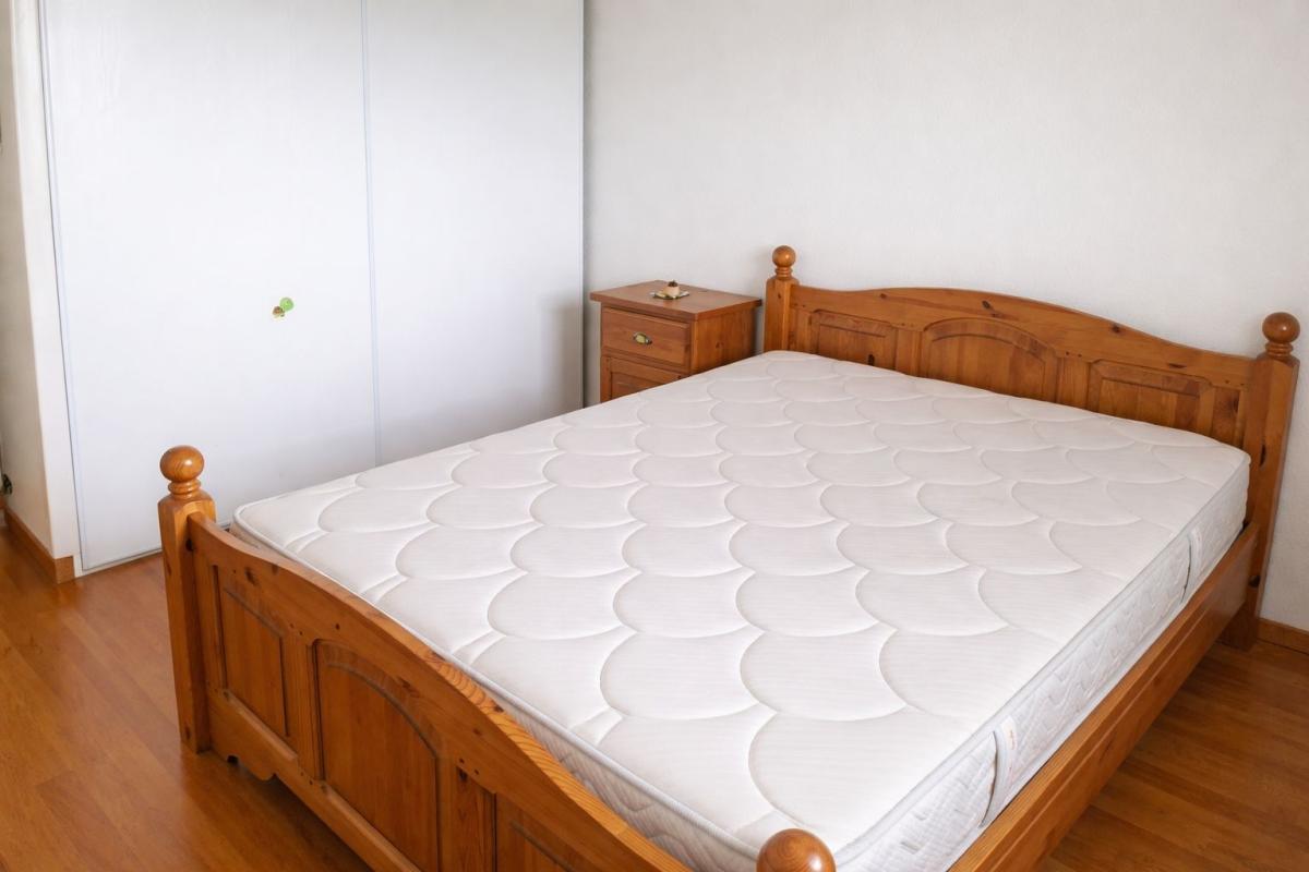 L'espace nuit propose une chambre avec placard intégré, ainsi qu'une salle de bain fonctionnelle.