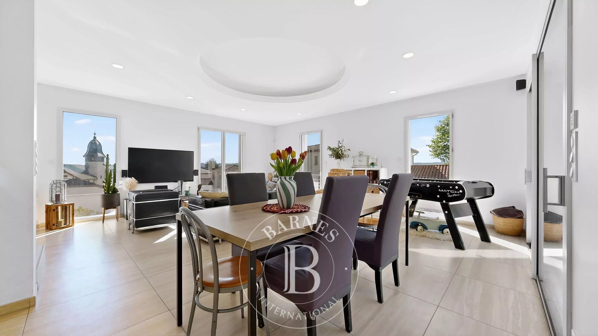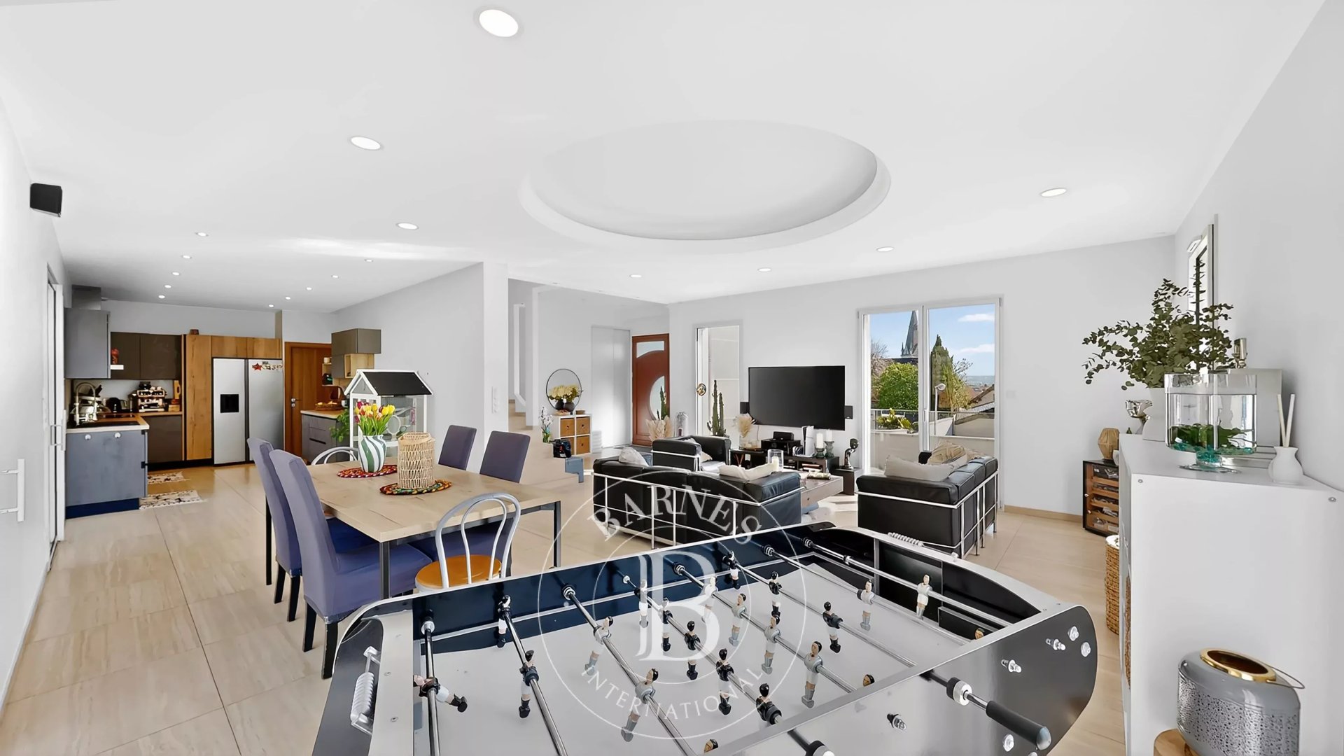 EXCLUSIVITÉ - VERNAISON - Maison contemporaine de 201 m² située sur les hauteurs de Vernaison, offrant une superbe vue dégagée. Construite en 2023, elle propose un vaste espace de vie lumineux de plus de 70 m² avec salon, salle à manger et cuisine ouverte équipée donnant sur le jardin.