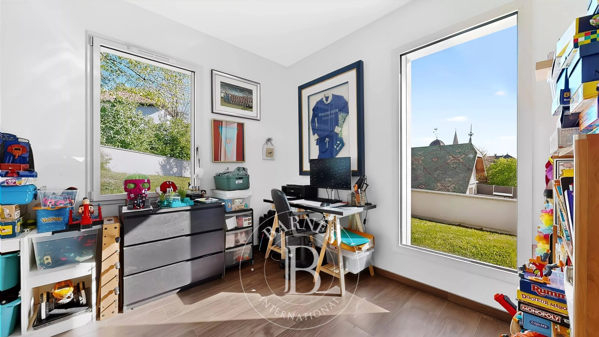 Le sous-sol comprend un garage double et deux pièces polyvalentes (bureau, salle de sport ou loisirs).