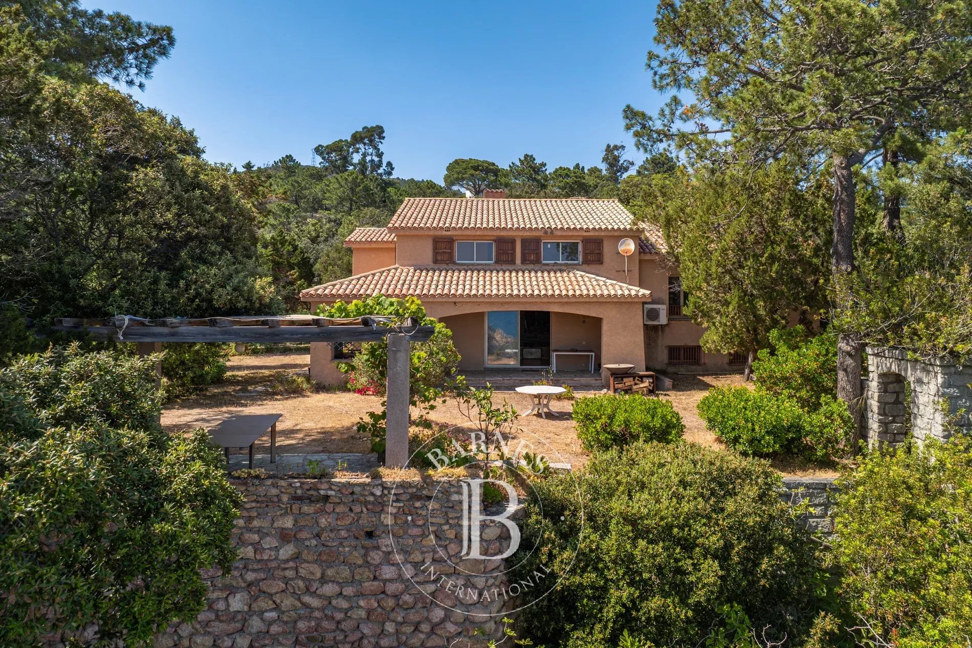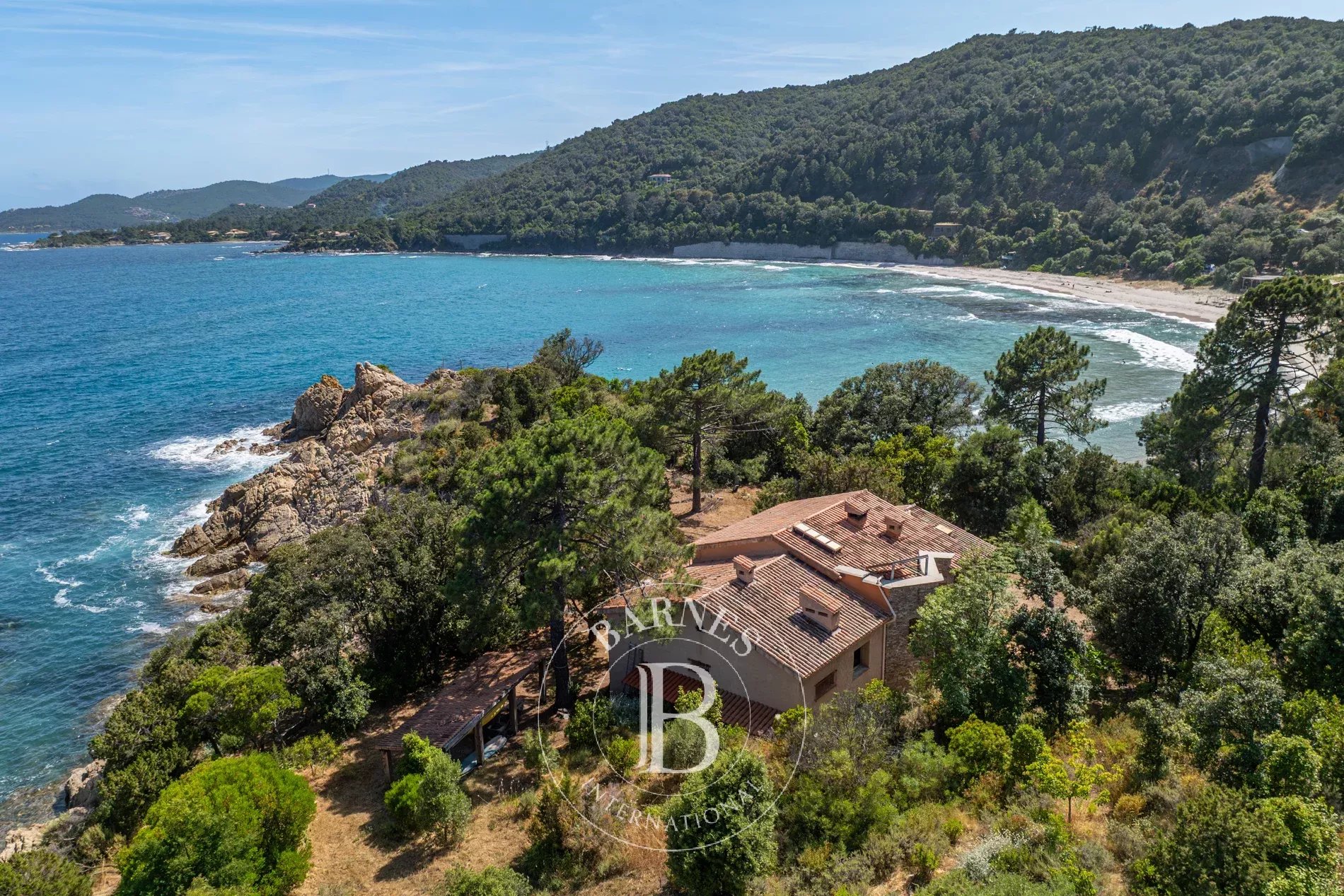 La villa d’environ 250 m² est édifiée sur un terrain paysager d’essences locales telles que des oliviers et fruitiers d'environ 9 060 m², avec accès privé à la plage et à une crique intimiste.