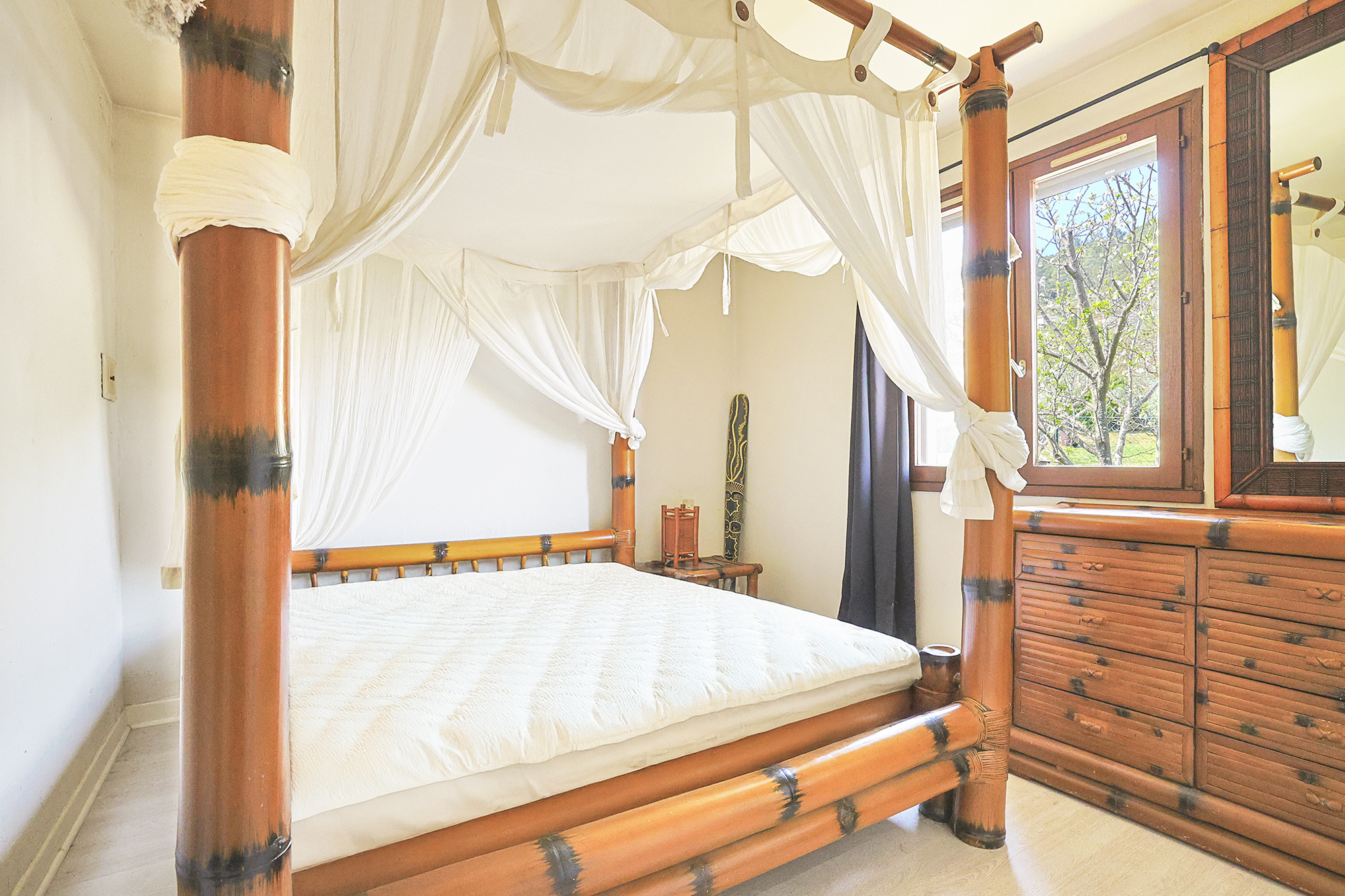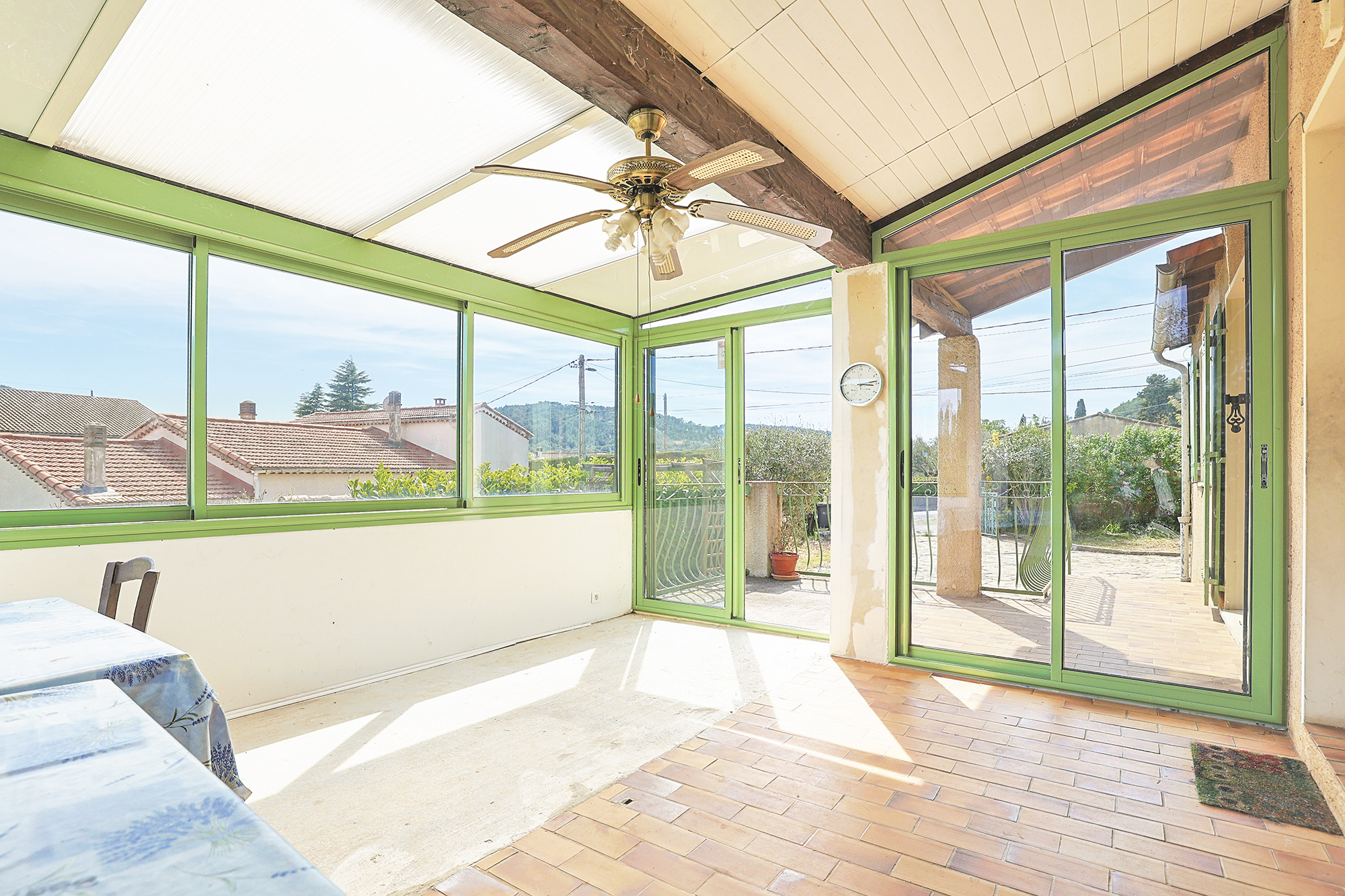 Extérieur : jardin plat, clos et arboré de 620m2, véranda aluminium de 15m2, garage de 20m2, carport, stationnements et abri de 10m2.