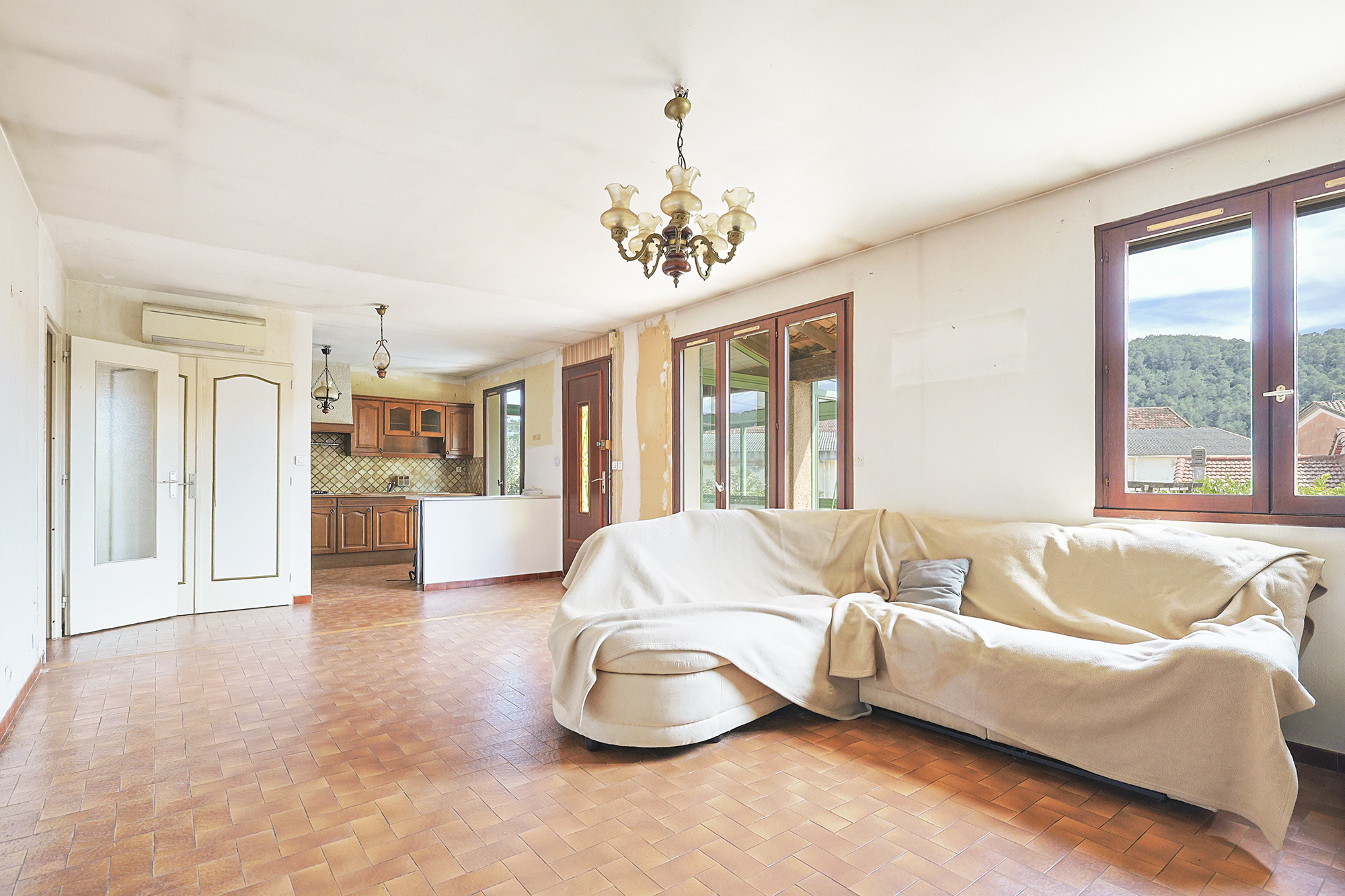 Prestations : climatisations réversibles x2, cheminée insert, eau de ville, tout à l'égout, double vitrage bois, volets bois, porte de garage motorisée et portail manuel.