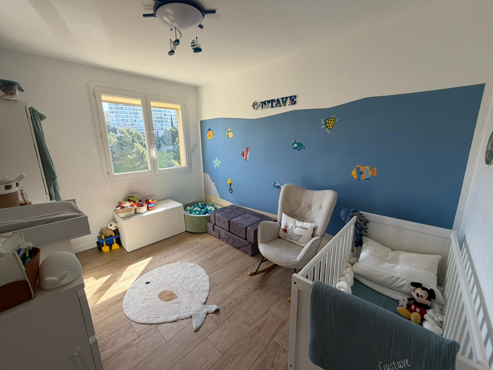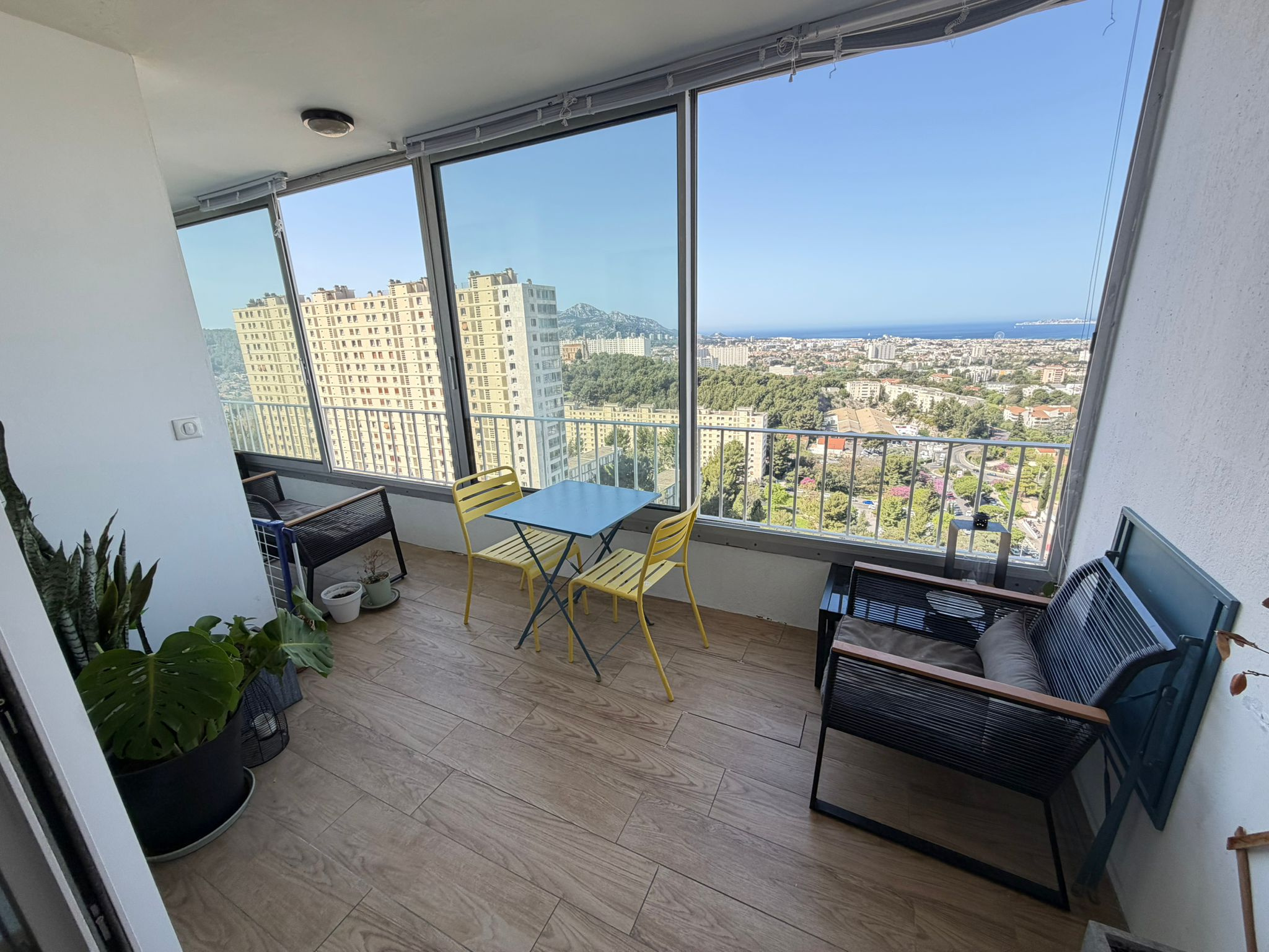 Entièrement refait et en excellent état, ce bien lumineux offre un cadre de vie agréable avec une vue dégagée sur la rade de Marseille et ses îles.