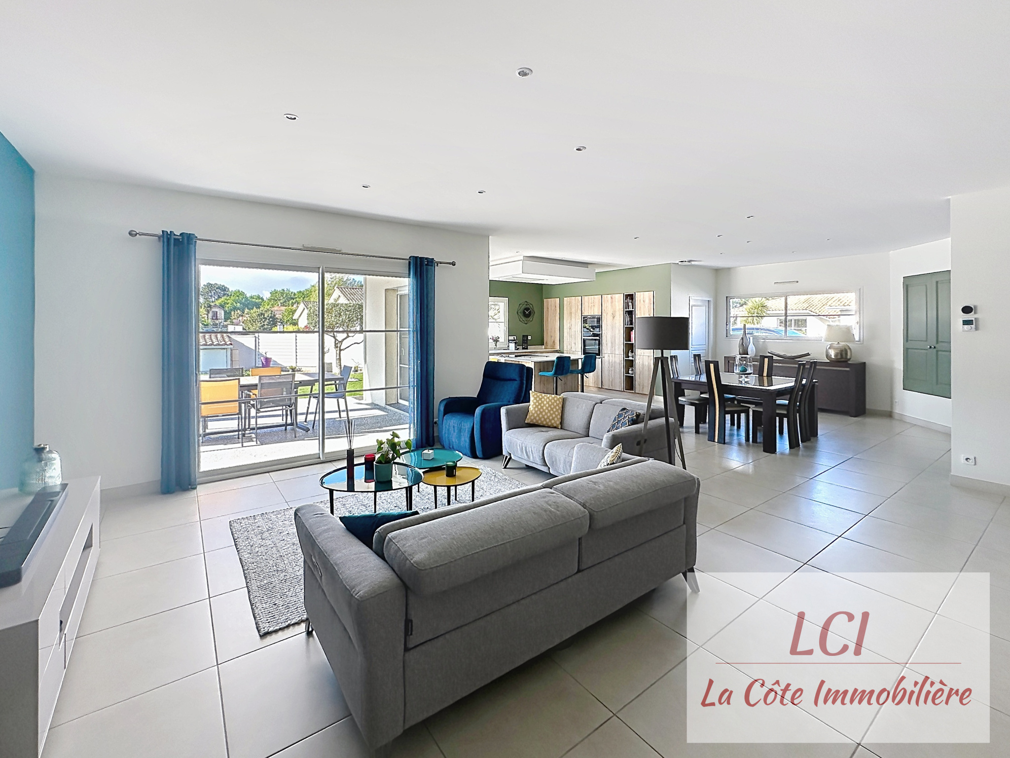Biganos, entre le port et le centre, à 1,8Km de la gare, cette maison contemporaine T5 parfaitement entretenue profite de prestations remarquables et très belles surfaces. De plain pied, les 182m2 habitables sont parfaitement agencés et aménagés ! L'entrée dessert une belle pièce de vie triple exposition de 70m2 avec cuisine haut de gamme et prolongée par une terrasse couverte permettant de profiter de l'extérieur toute l'année.
