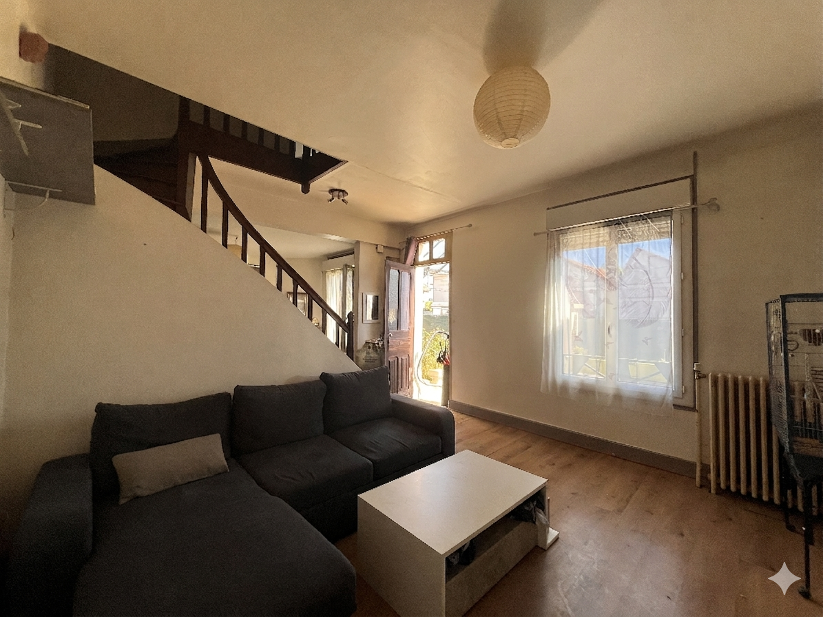 Secteur hôpital: L'agence JUST IMMO vous propose cette maison des années 1930 pleine de potentiel et de charme. Au rez-de-chaussée, vous trouverez un salon, une salle à manger ouverte sur la cuisine équipée, avec un accès direct au jardin clos et arboré. Un wc. À l'étage, une buanderie, deux chambres, une salle d'eau. Une cave et une dépendance viennent compléter ce bien. Un terrain clos arboré de 227 m2. Travaux à prévoir. Taxe fonciére 1161EUR. DPE F.
