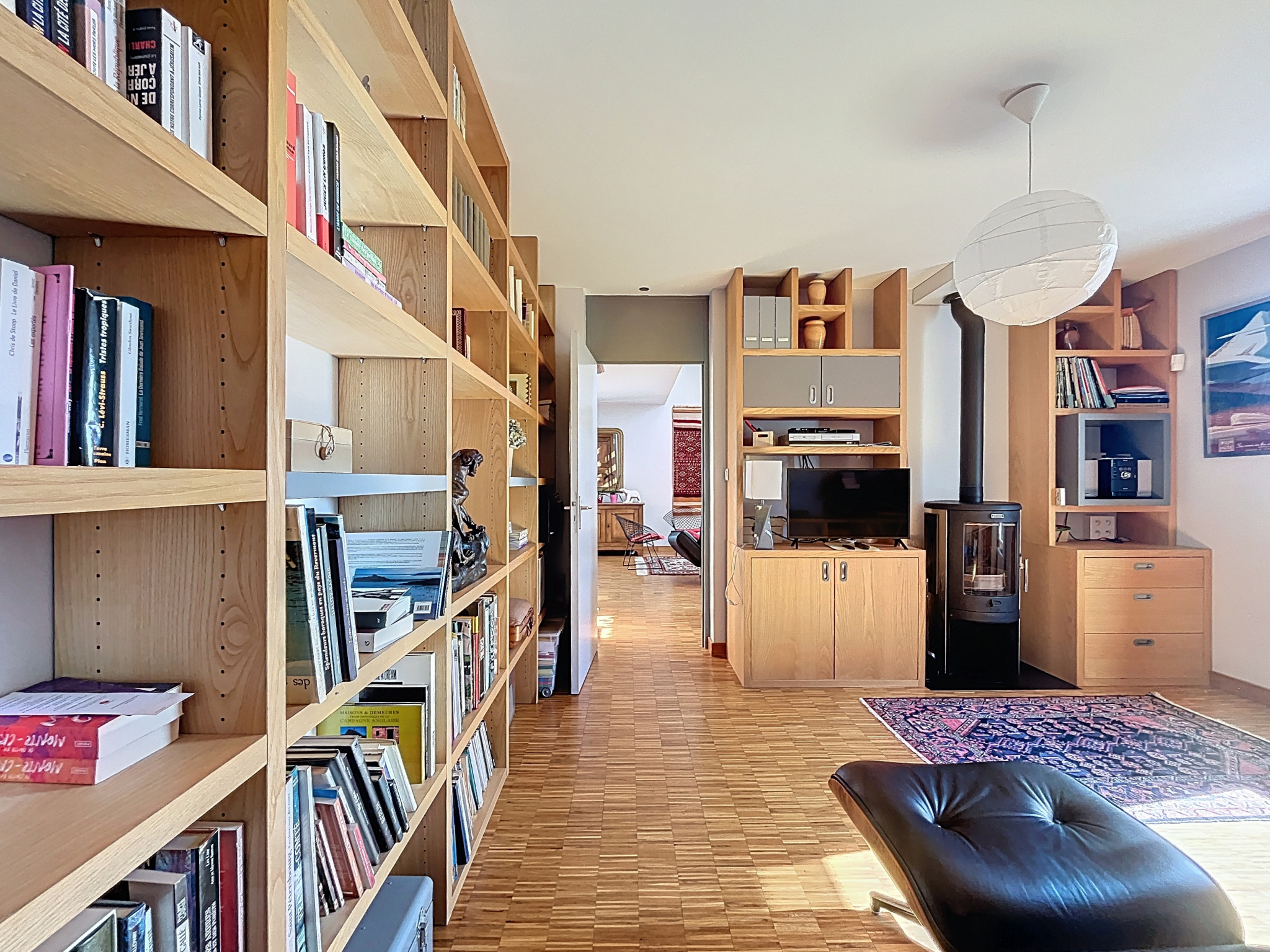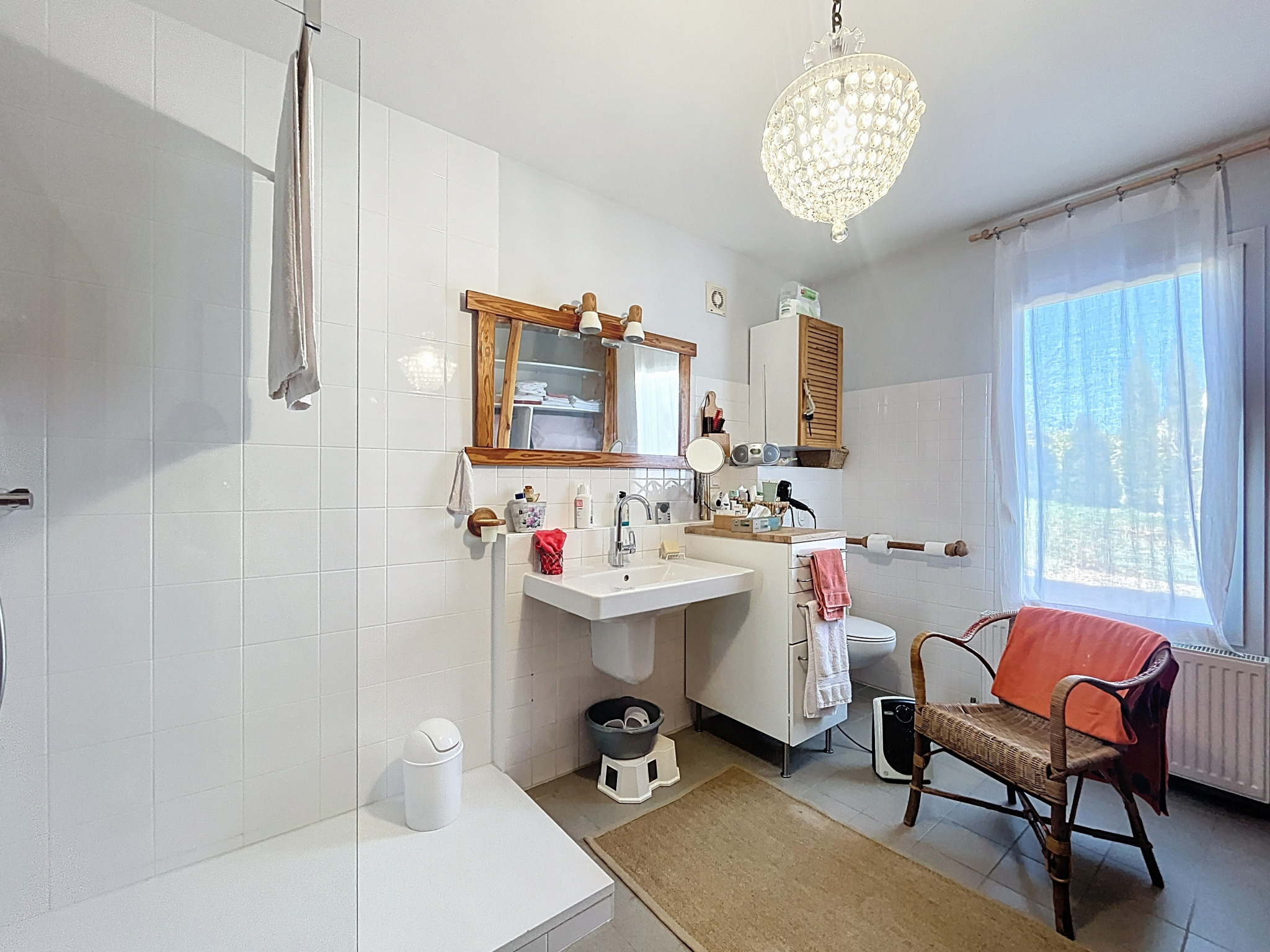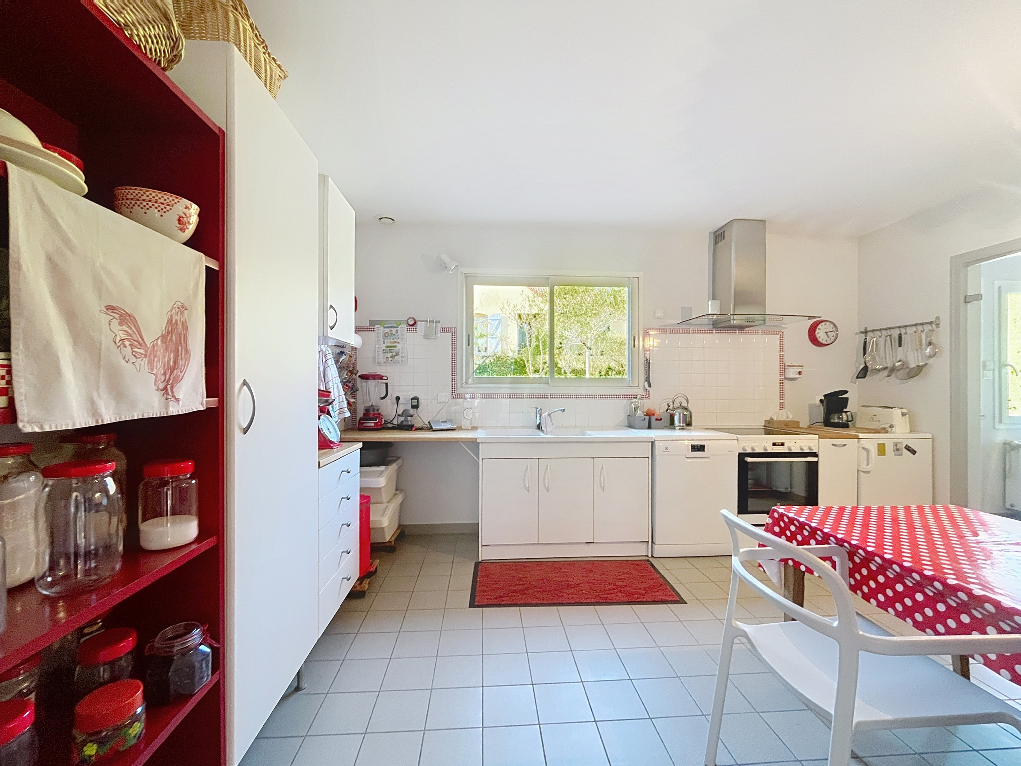 Un spacieux salon/séjour donnant accès à une terrasse exposée Sud, une bibliothèque/bureau avec poêle à bois, une cuisine indépendante, un cellier, une buanderie/chaufferie, w.c séparé avec rangements, suite parentale avec salle de douches et w.c. A l'étage, 3 chambres, une pièce bureau/dressing, une salle de douches, w.c. séparé.