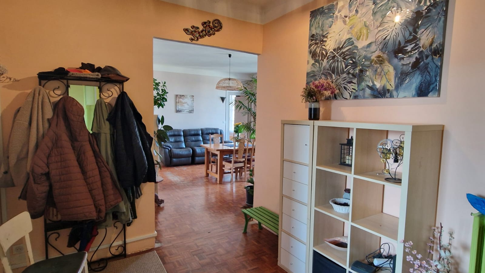 Il se compose d'une grande entrée, une cuisine, 4 chambres, salle d'eau, WC et la pièce de vie. Un grenier + une pièce aménagée de 25m2, une cave et un garage complètent cet appartement.