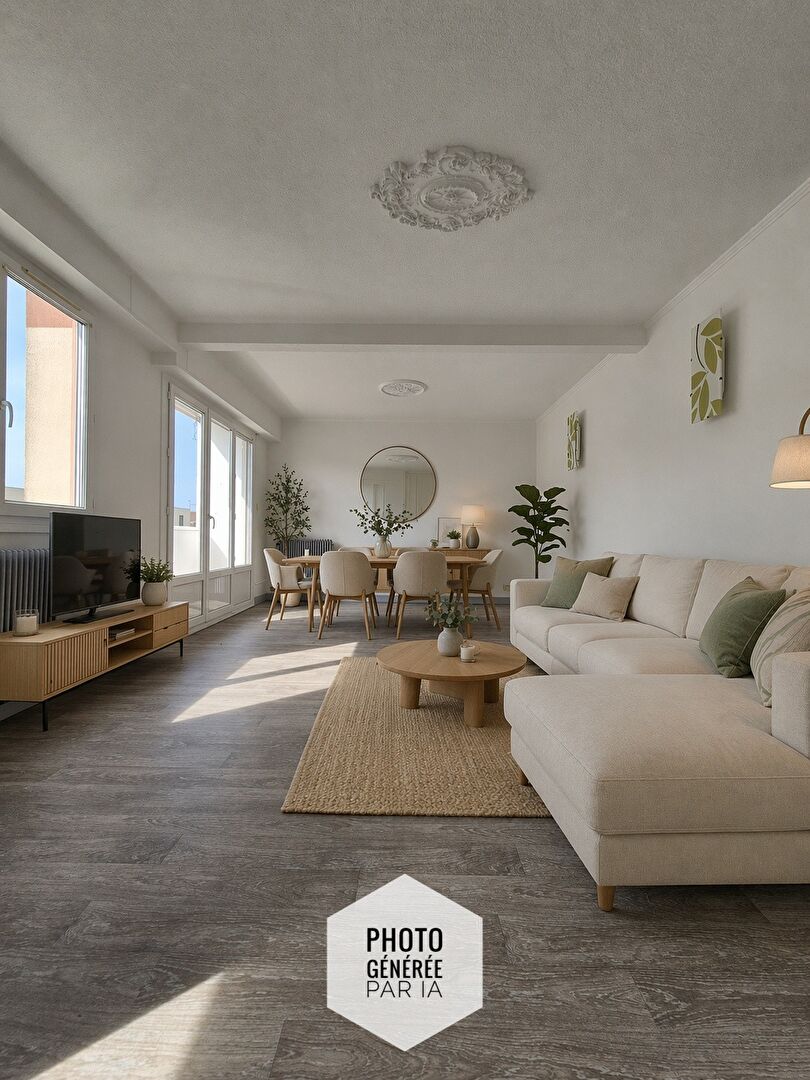 L'appartement propose un double salon-séjour lumineux d'environ 30 m², ouvrant sur un petit balcon. La cuisine est séparée et équipée, apportant confort et praticité au quotidien.