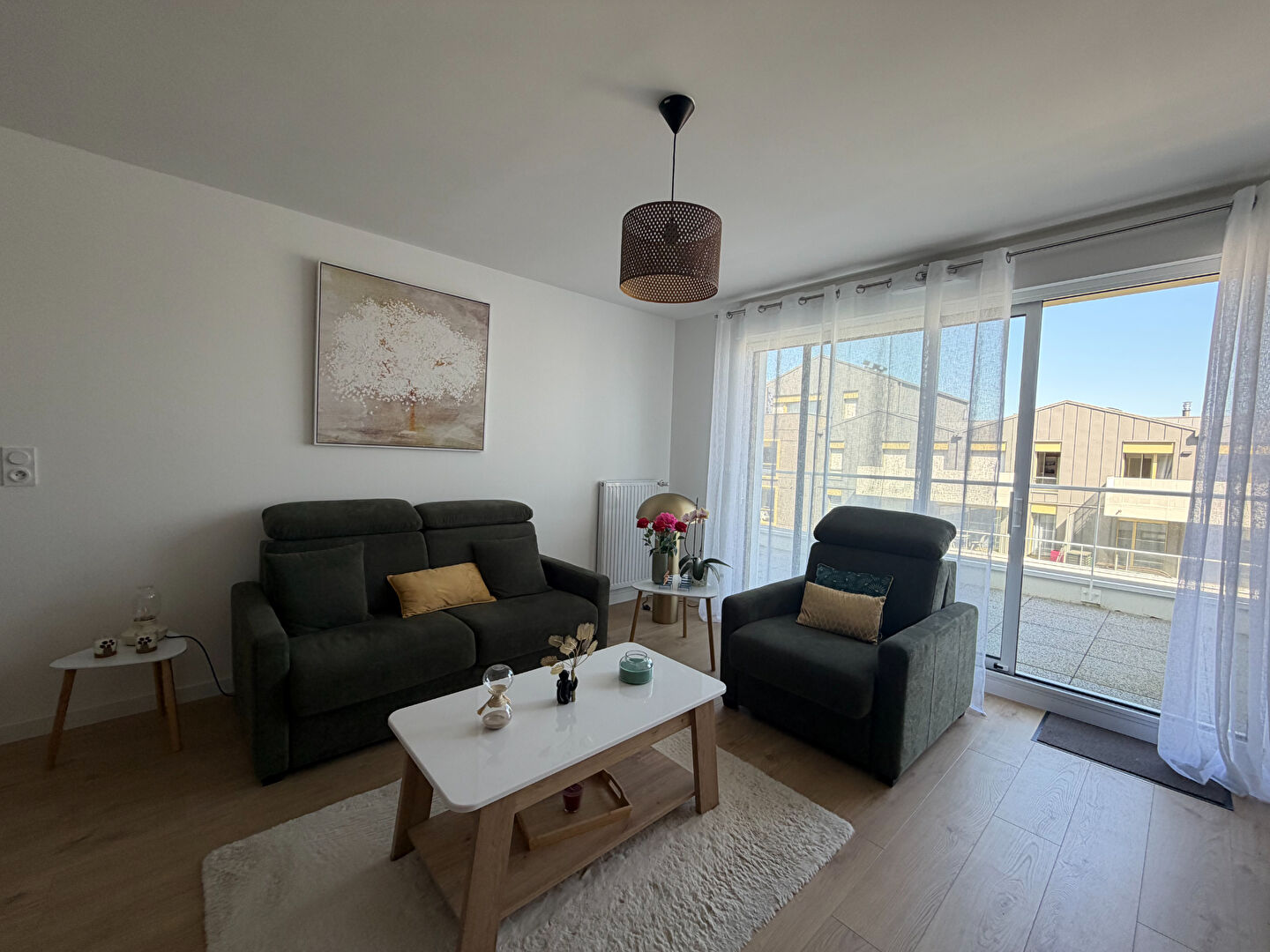 Kermarrec vous propose cette appartement récent de 66 m² habitable situé au 4ème étage avec ascenseur. Il comprend : entrée, buanderie, salon cuisine avec une terrasse d'environs 20 m² exposée EST, dégagement, deux chambres, wc et une salle d'eau. Une place de parking sécurisée en sous-sol avec une prise pour voiture électrique. référence : 40478.